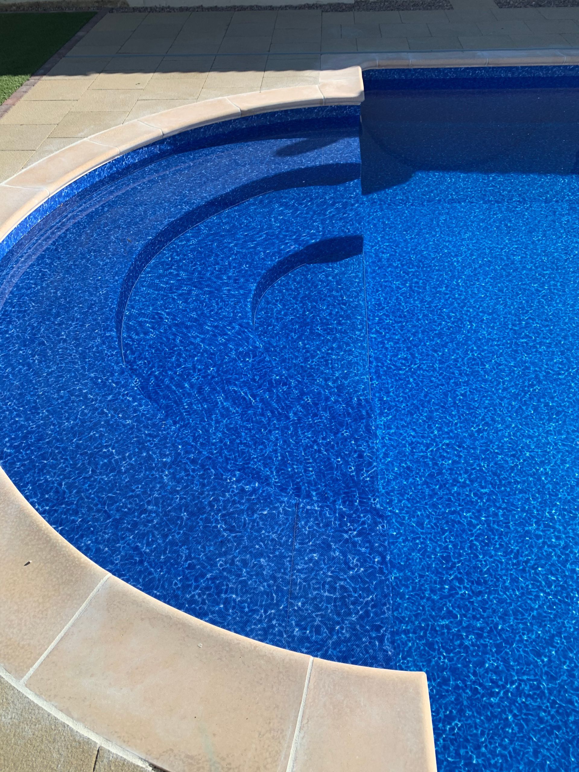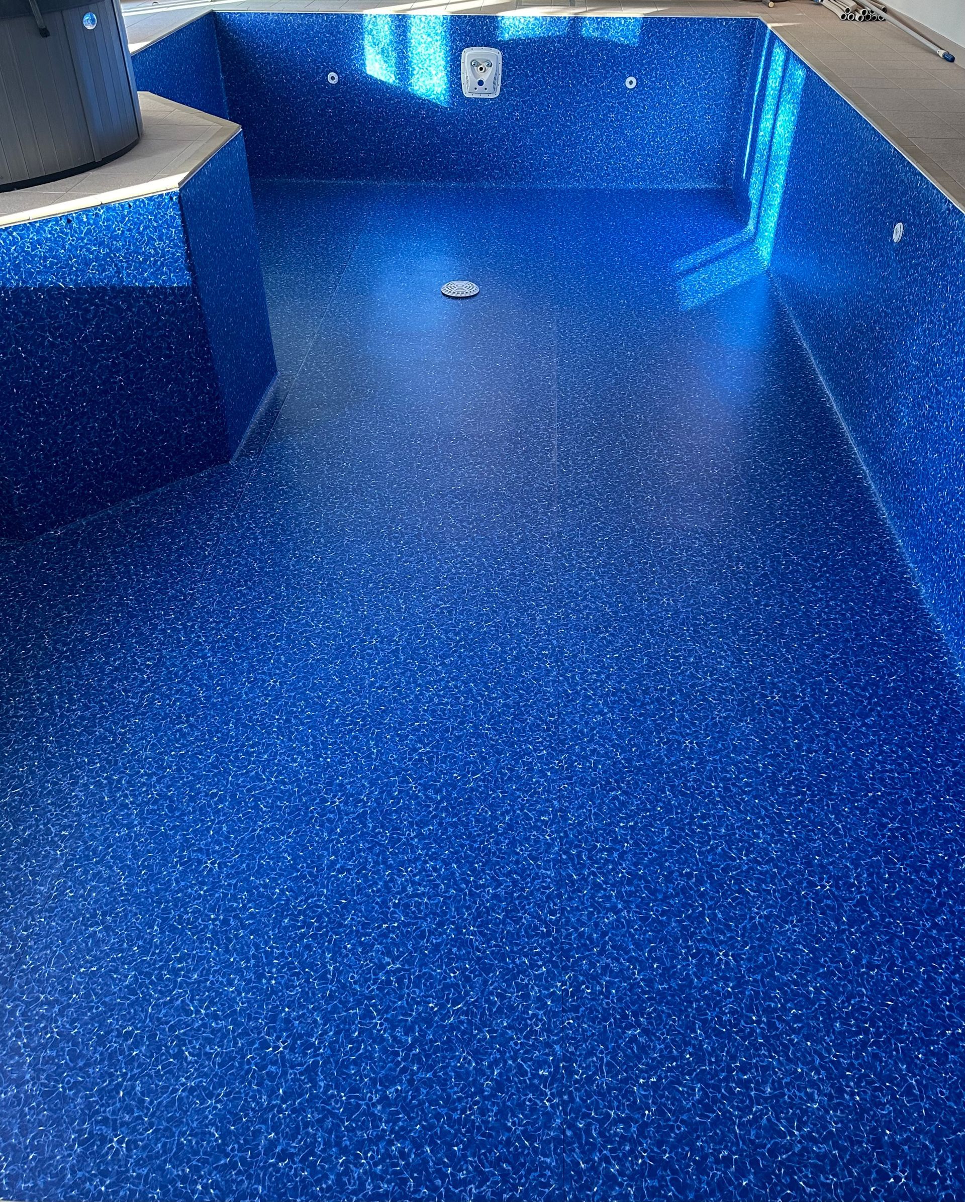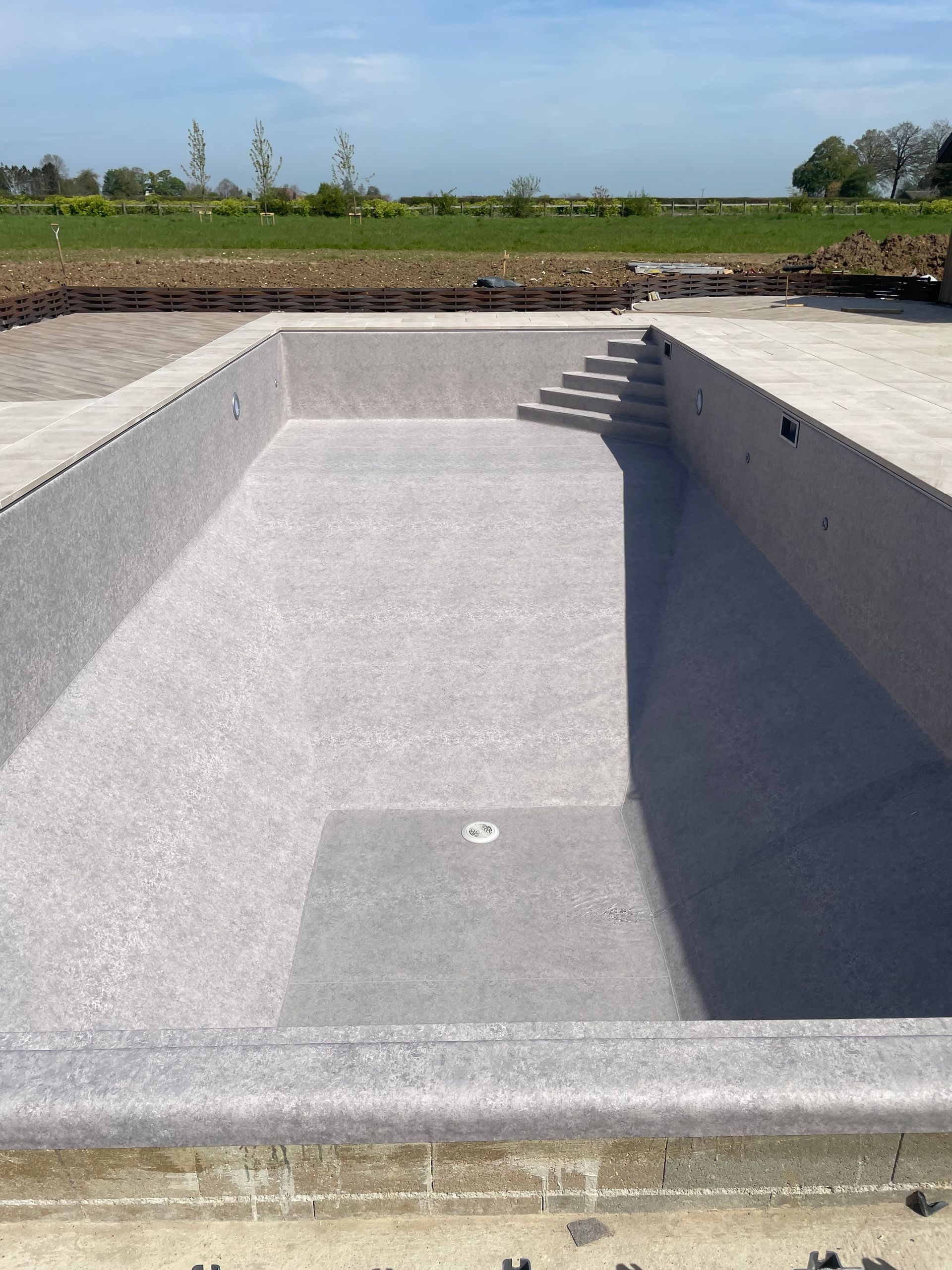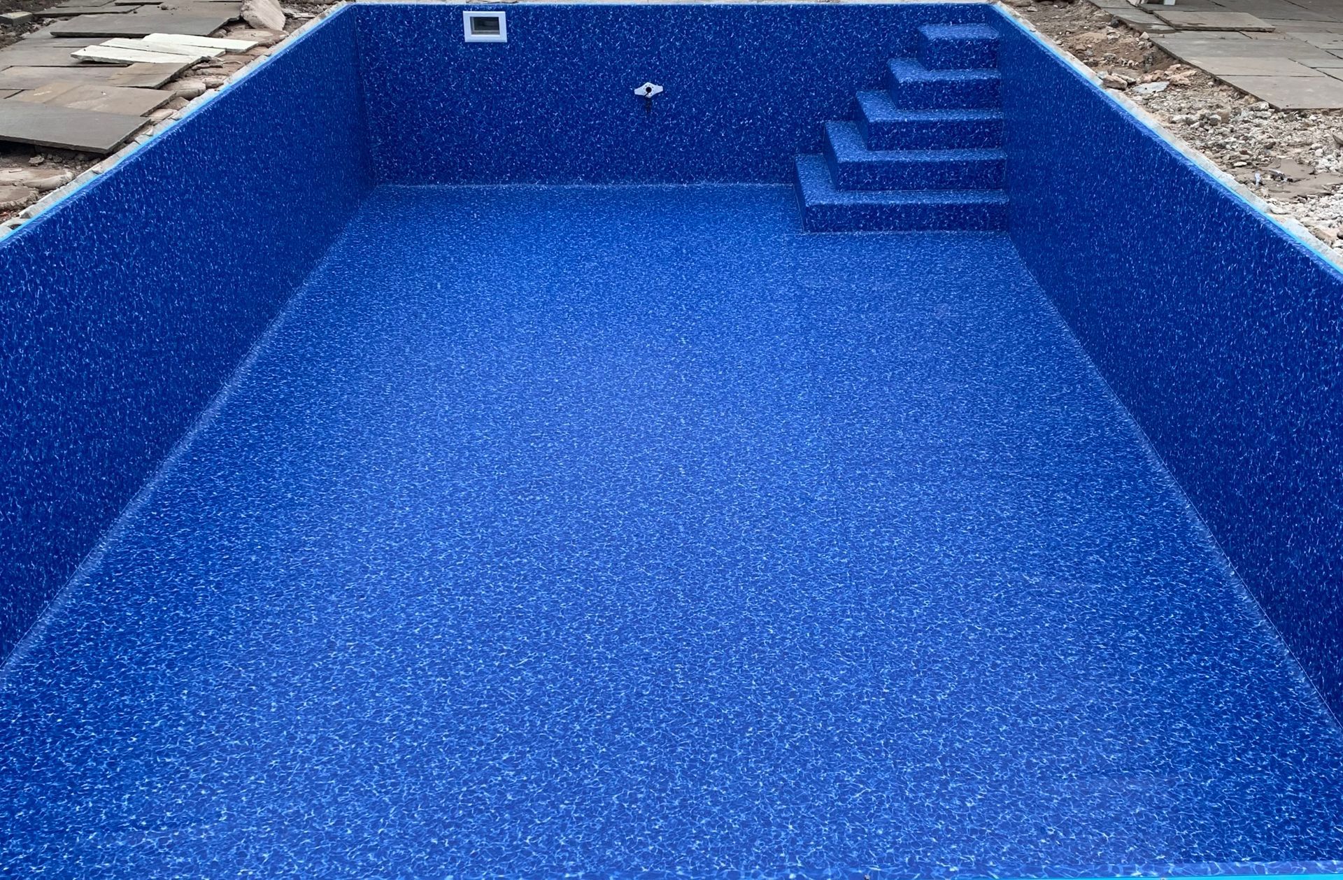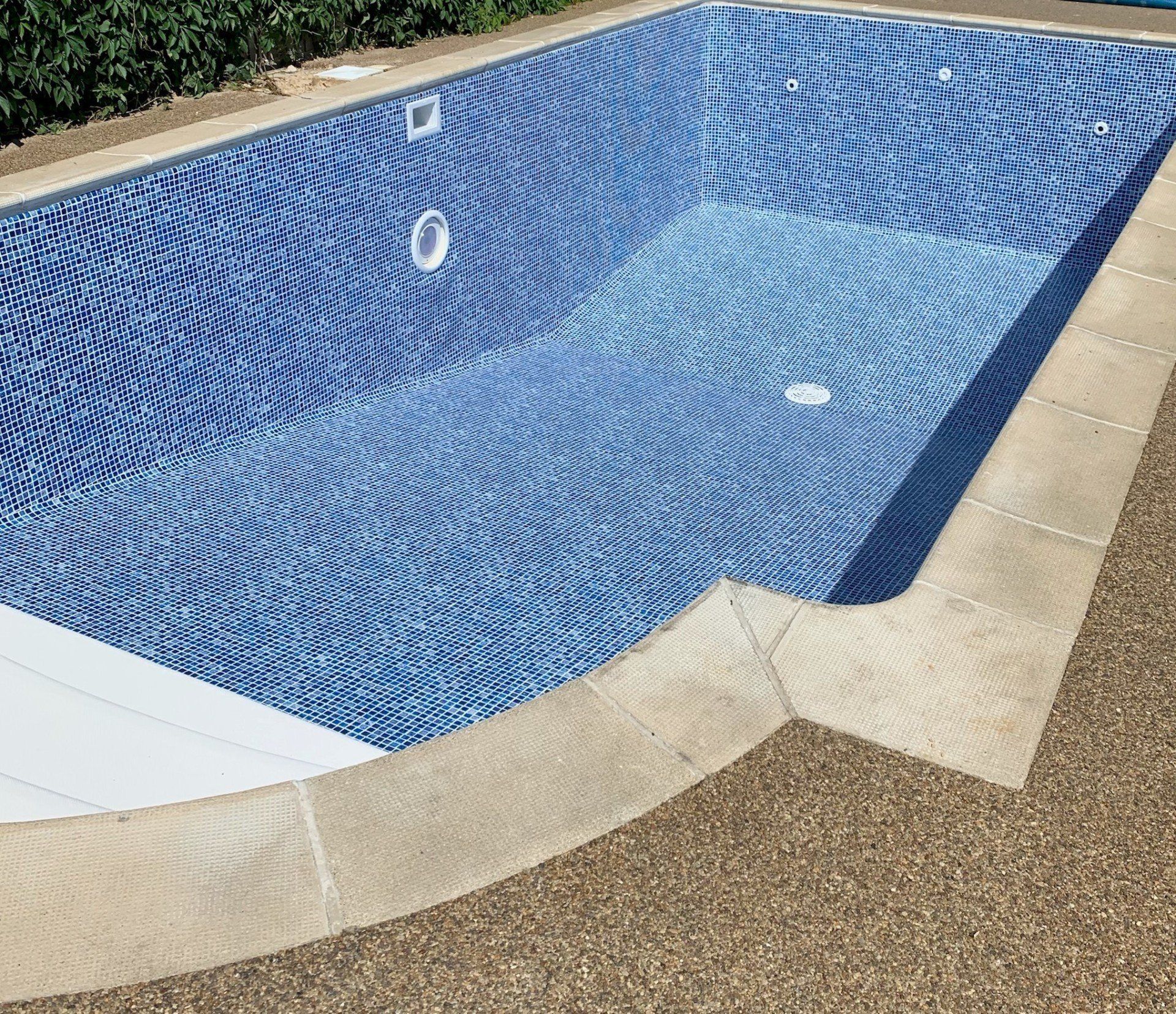 Water-filled Blue Sparks pool with Stoneflex Bazelet steps