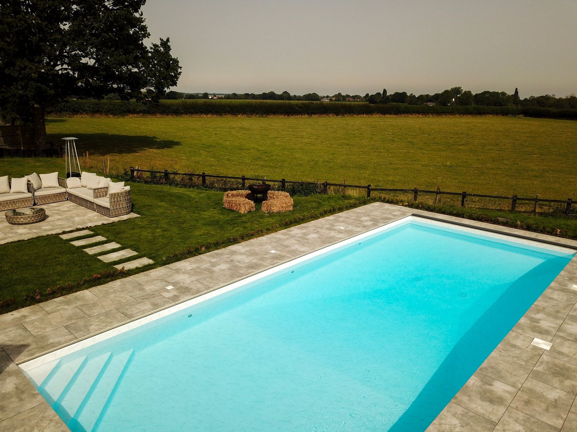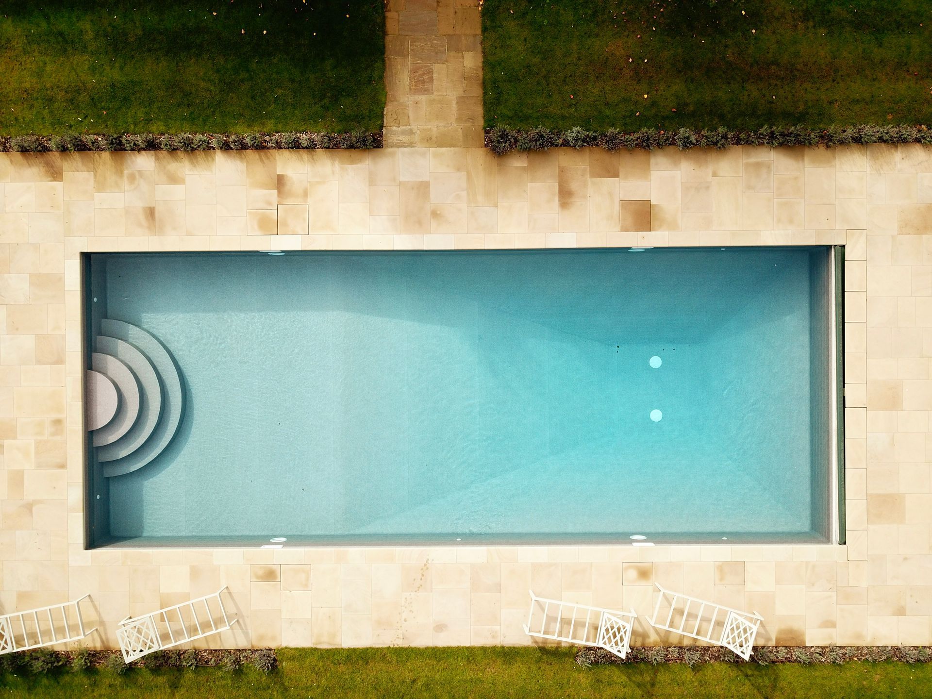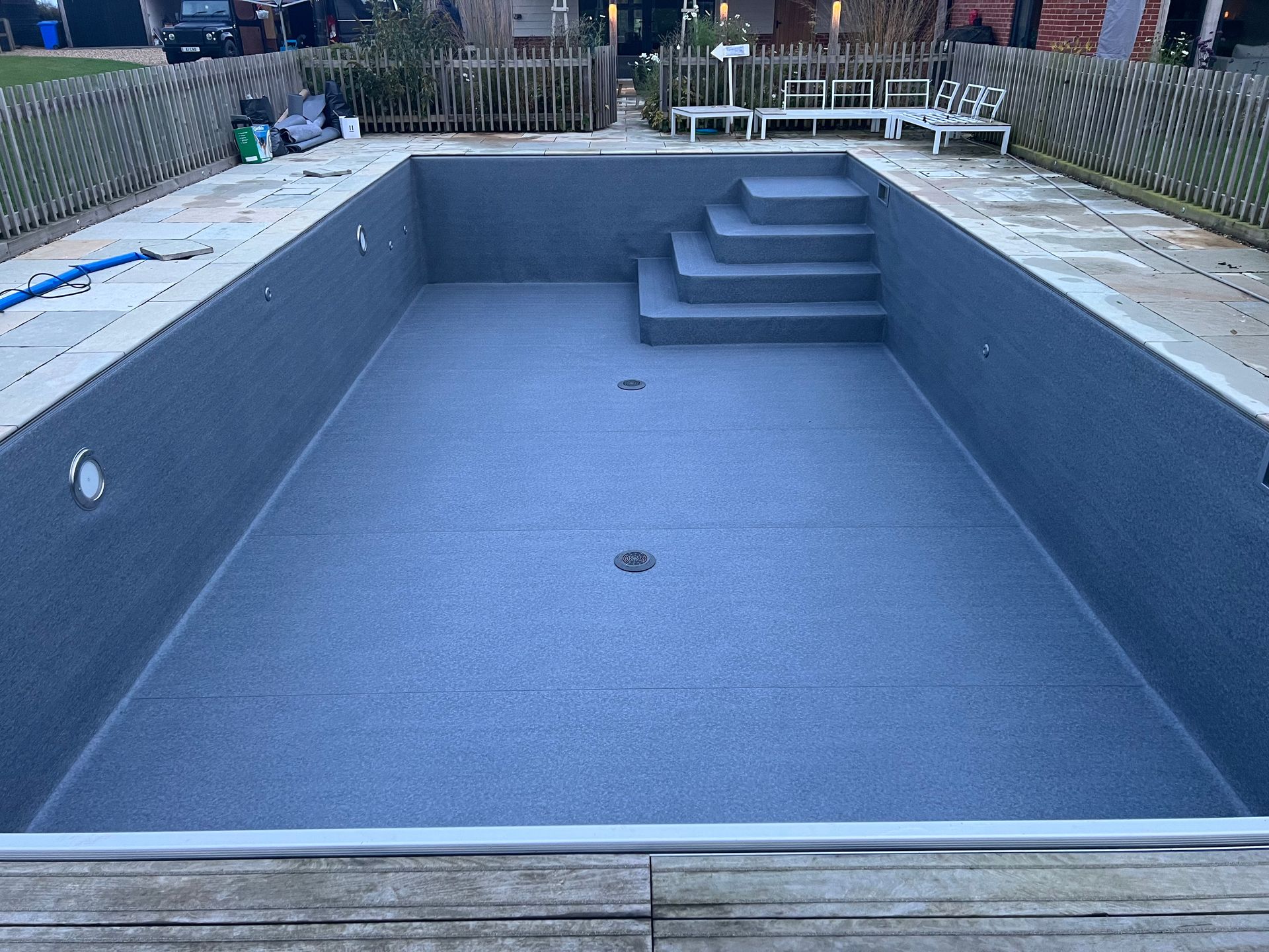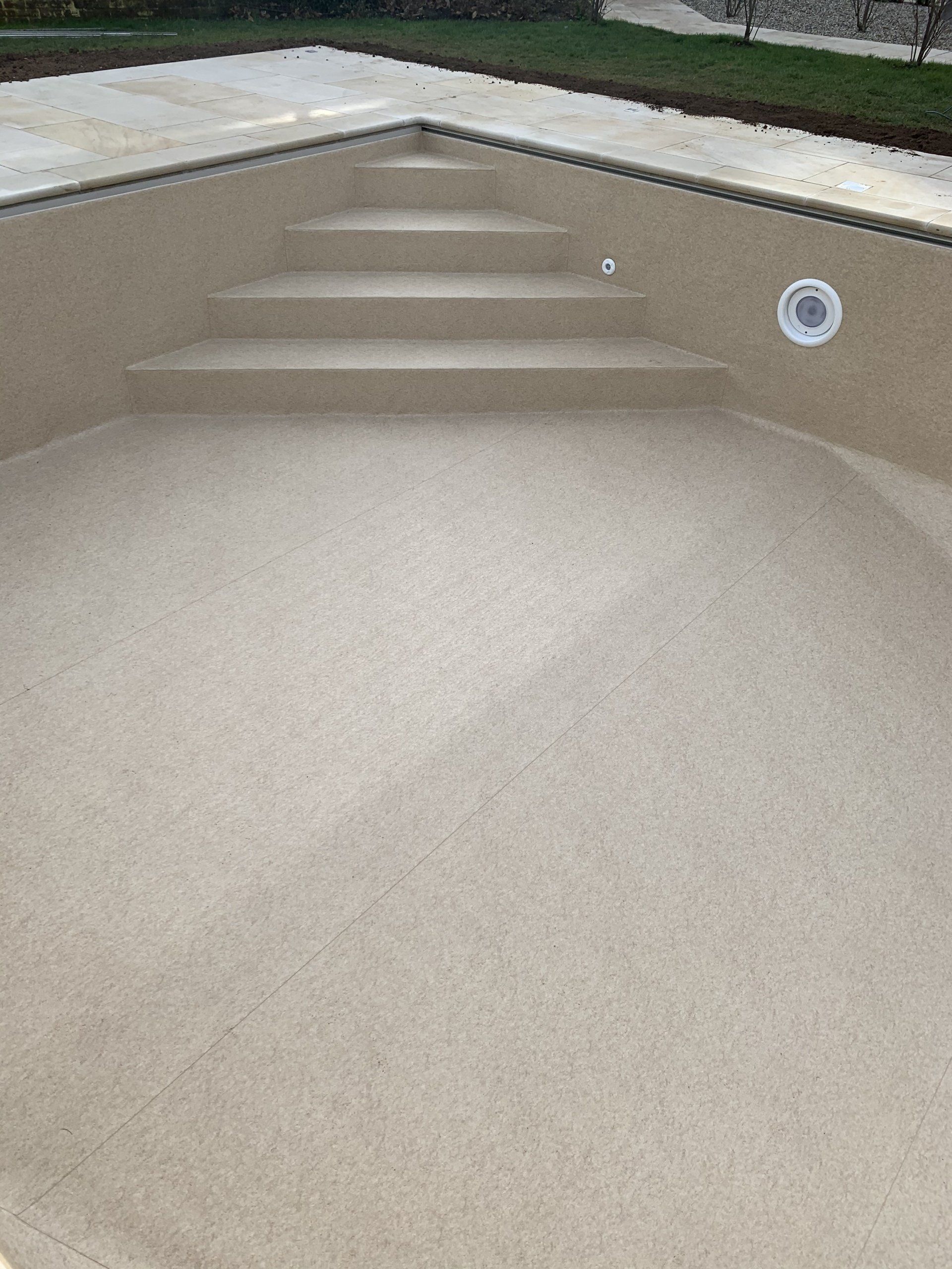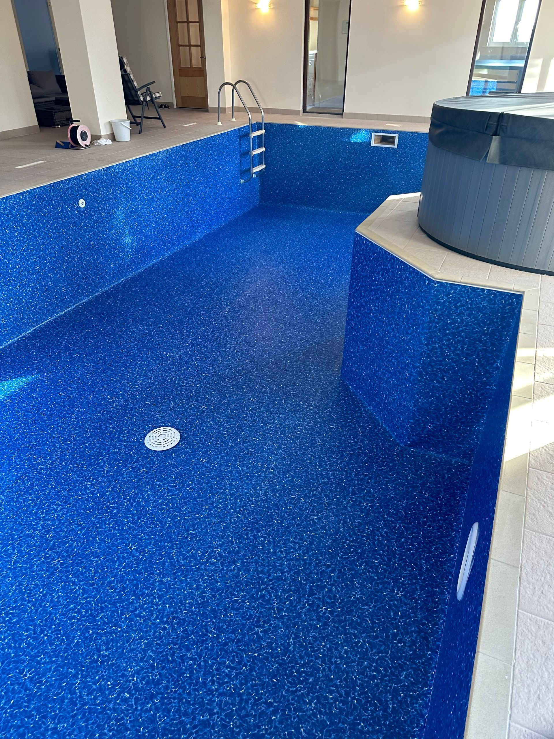 Water-filled Blue Sparks pool with Stoneflex Bazelet steps