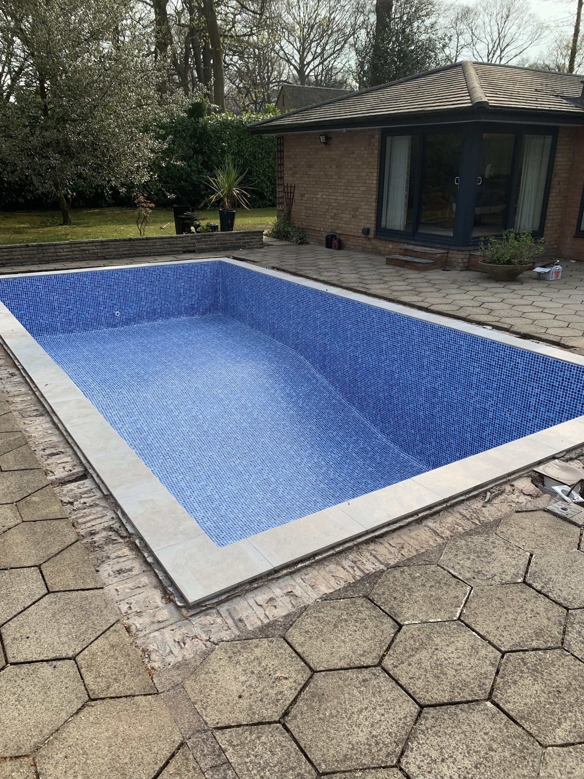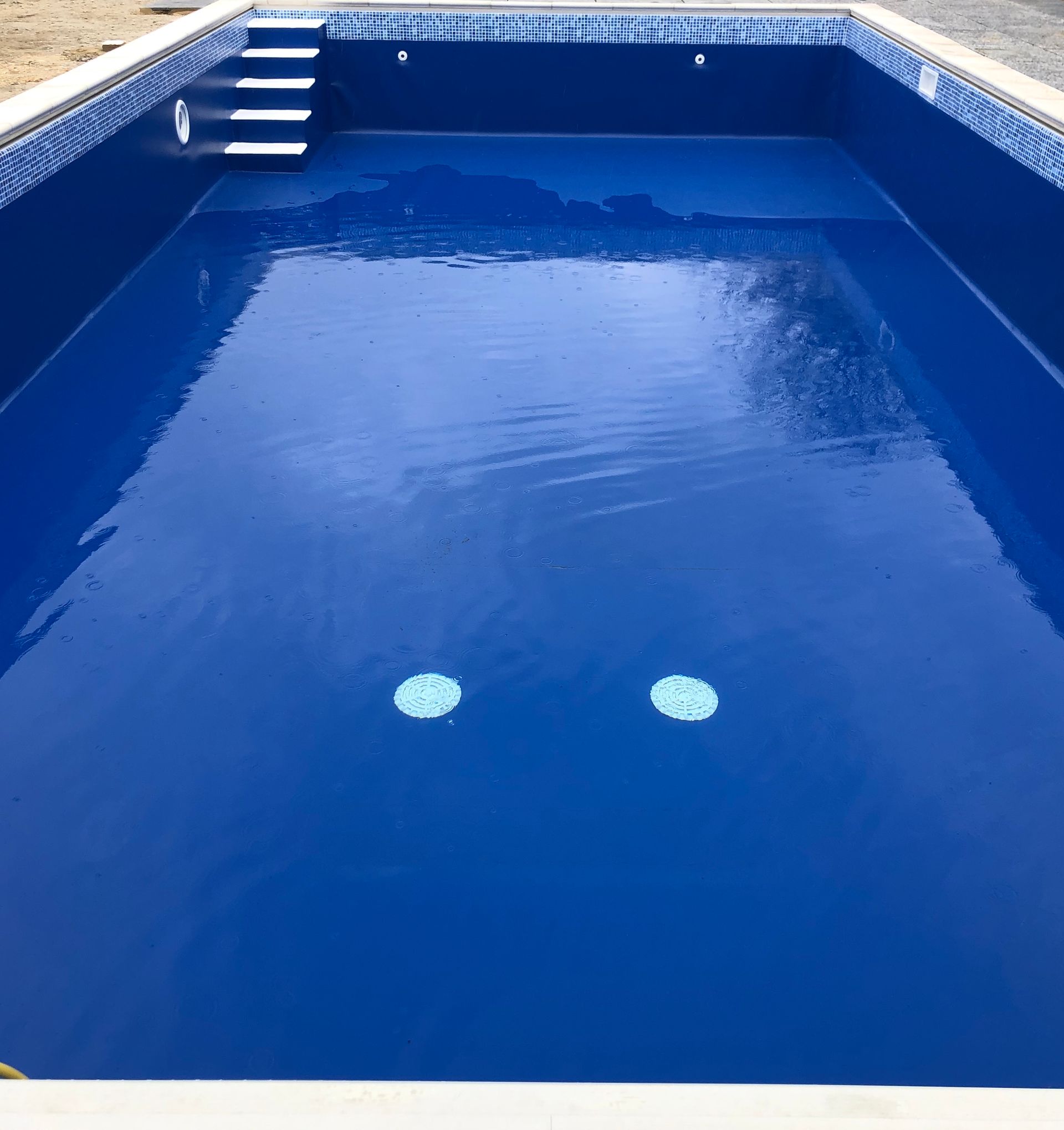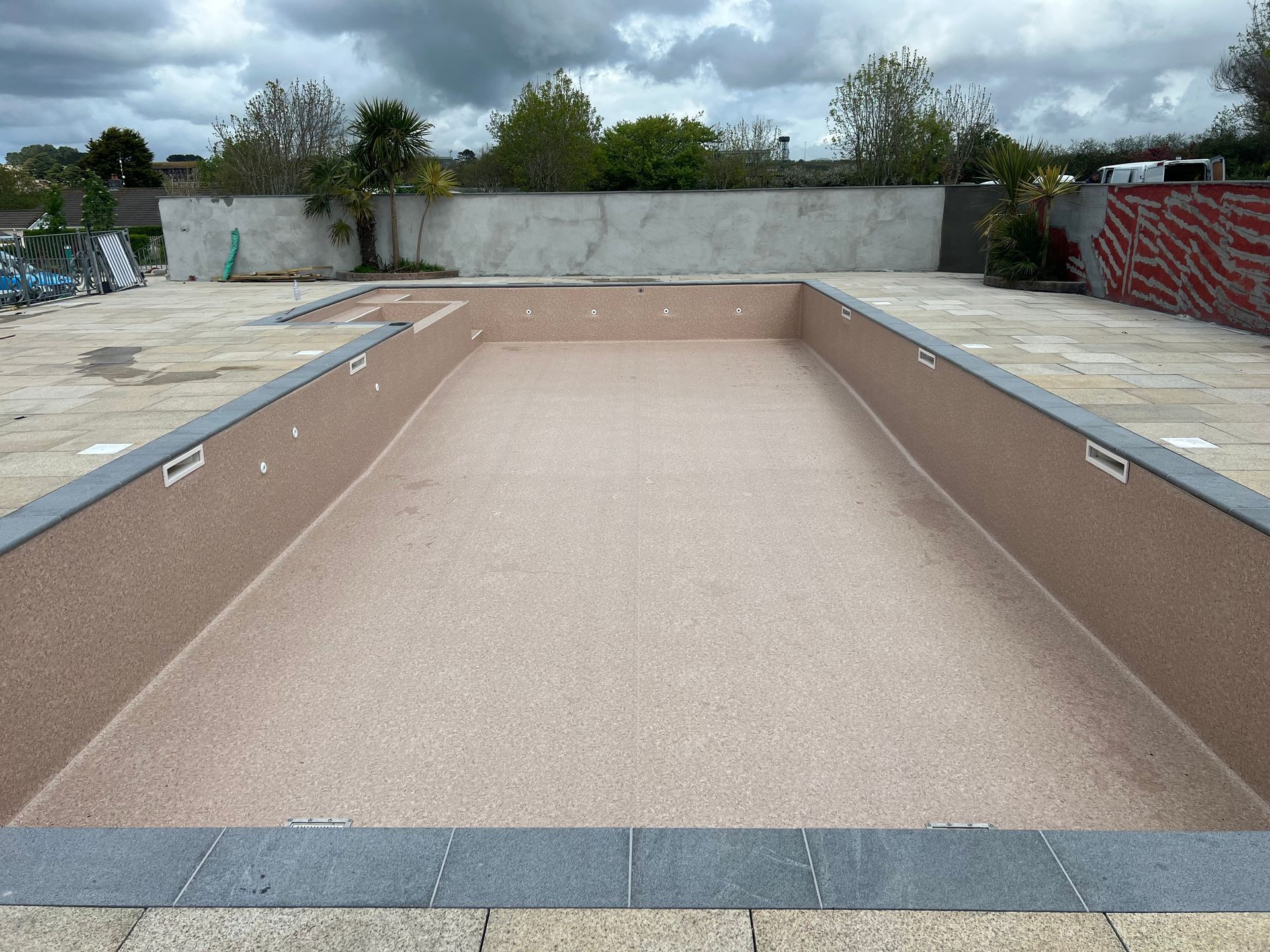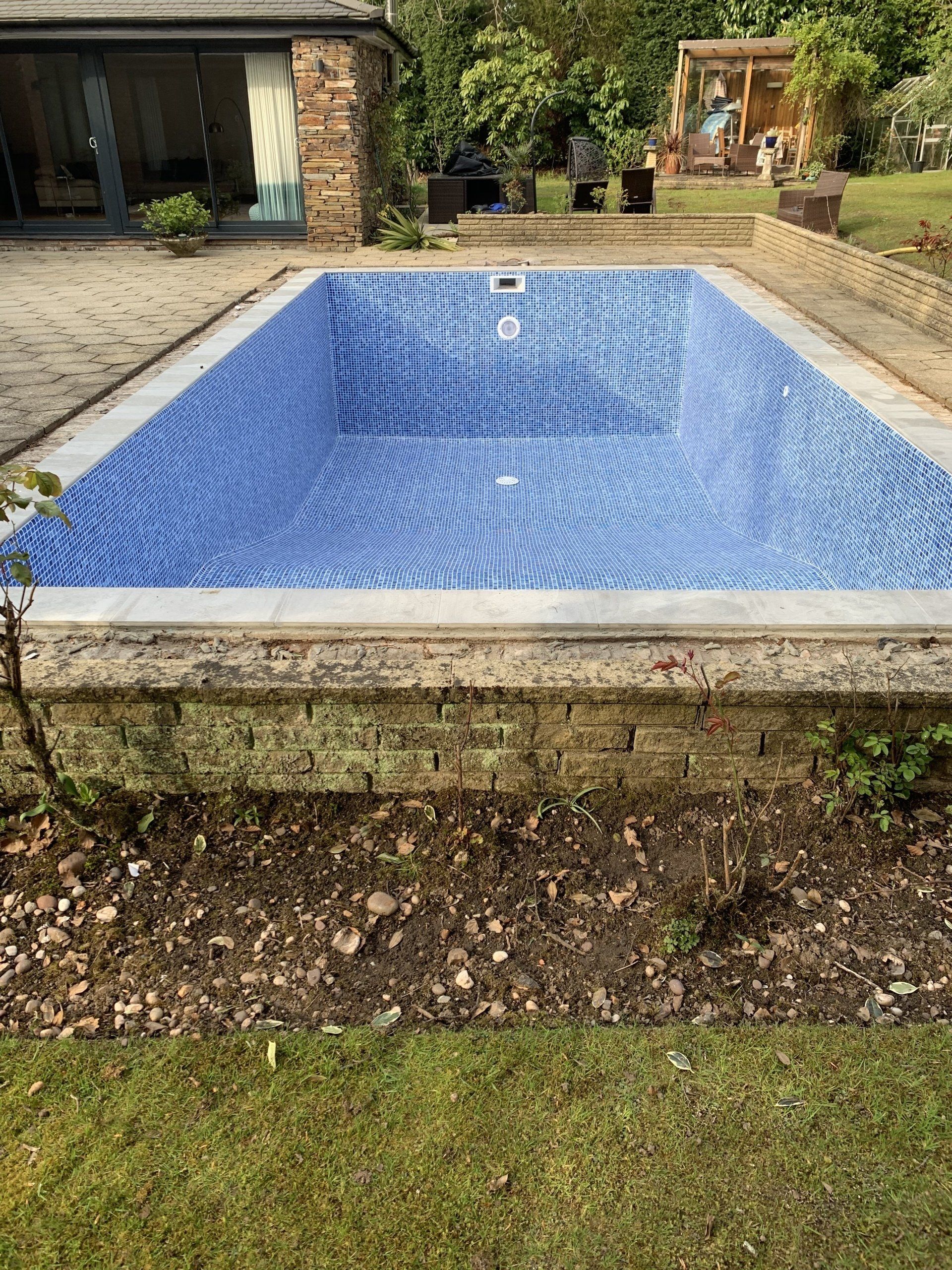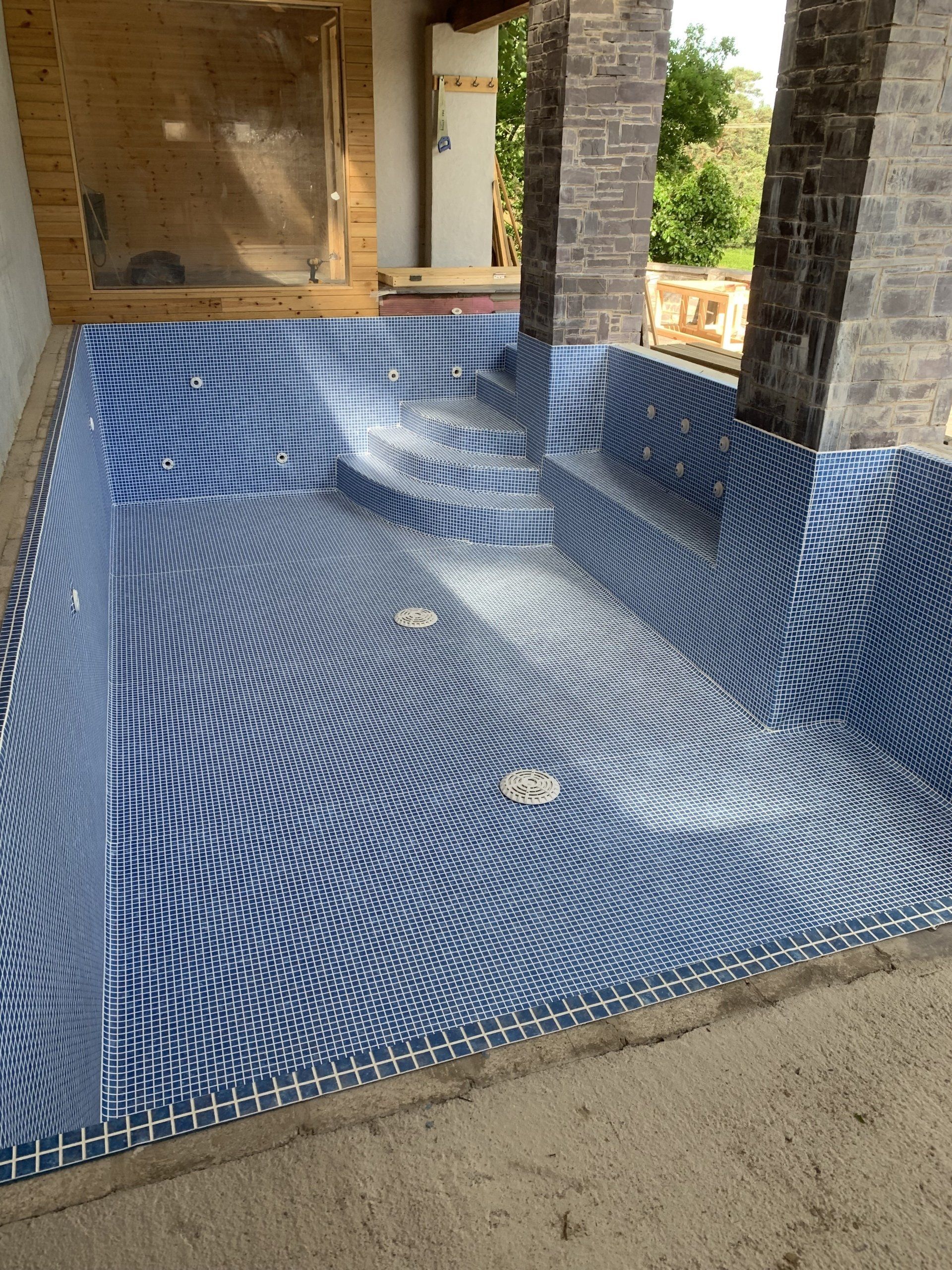 Water-filled Blue Sparks pool with Stoneflex Bazelet steps