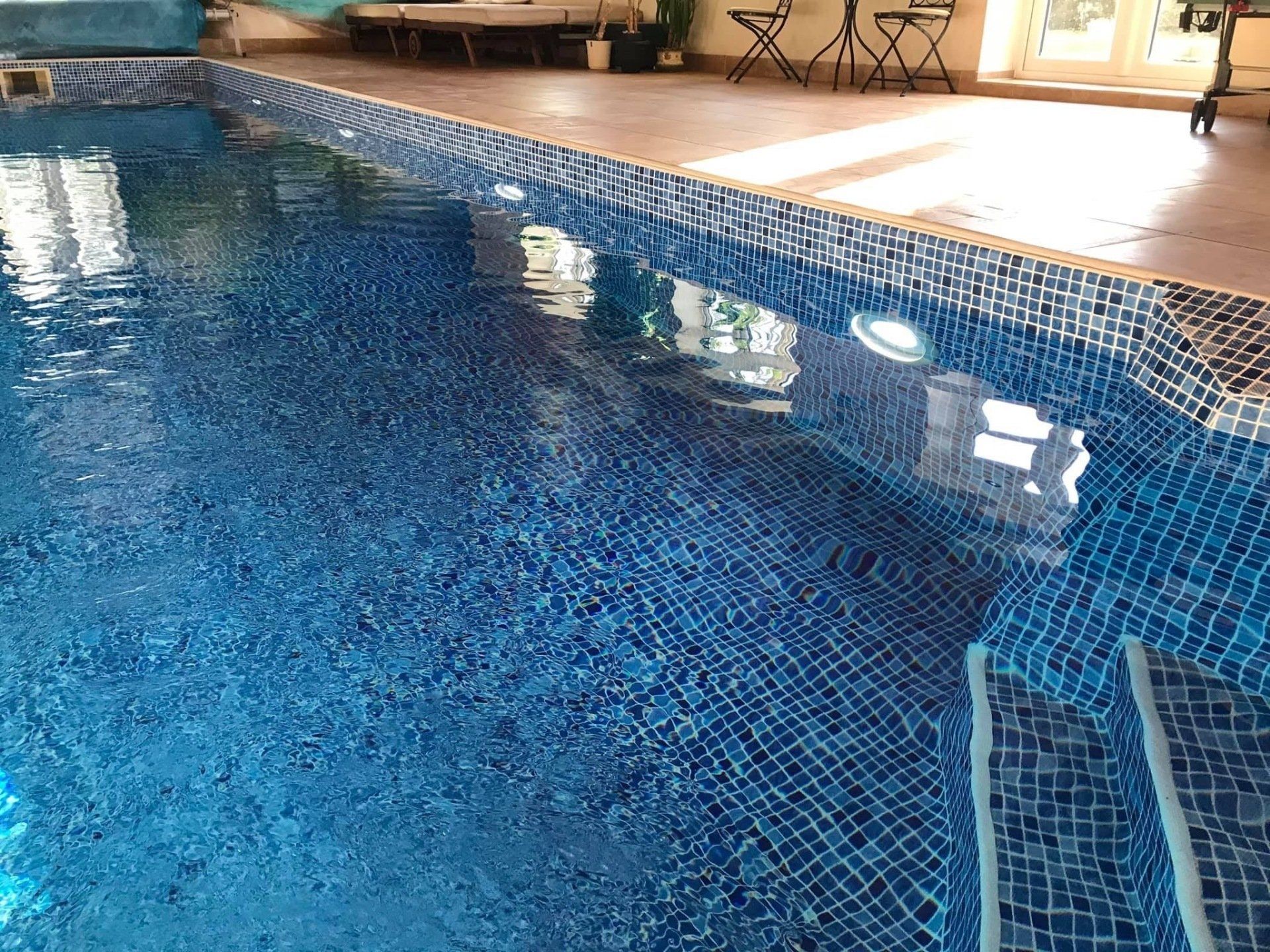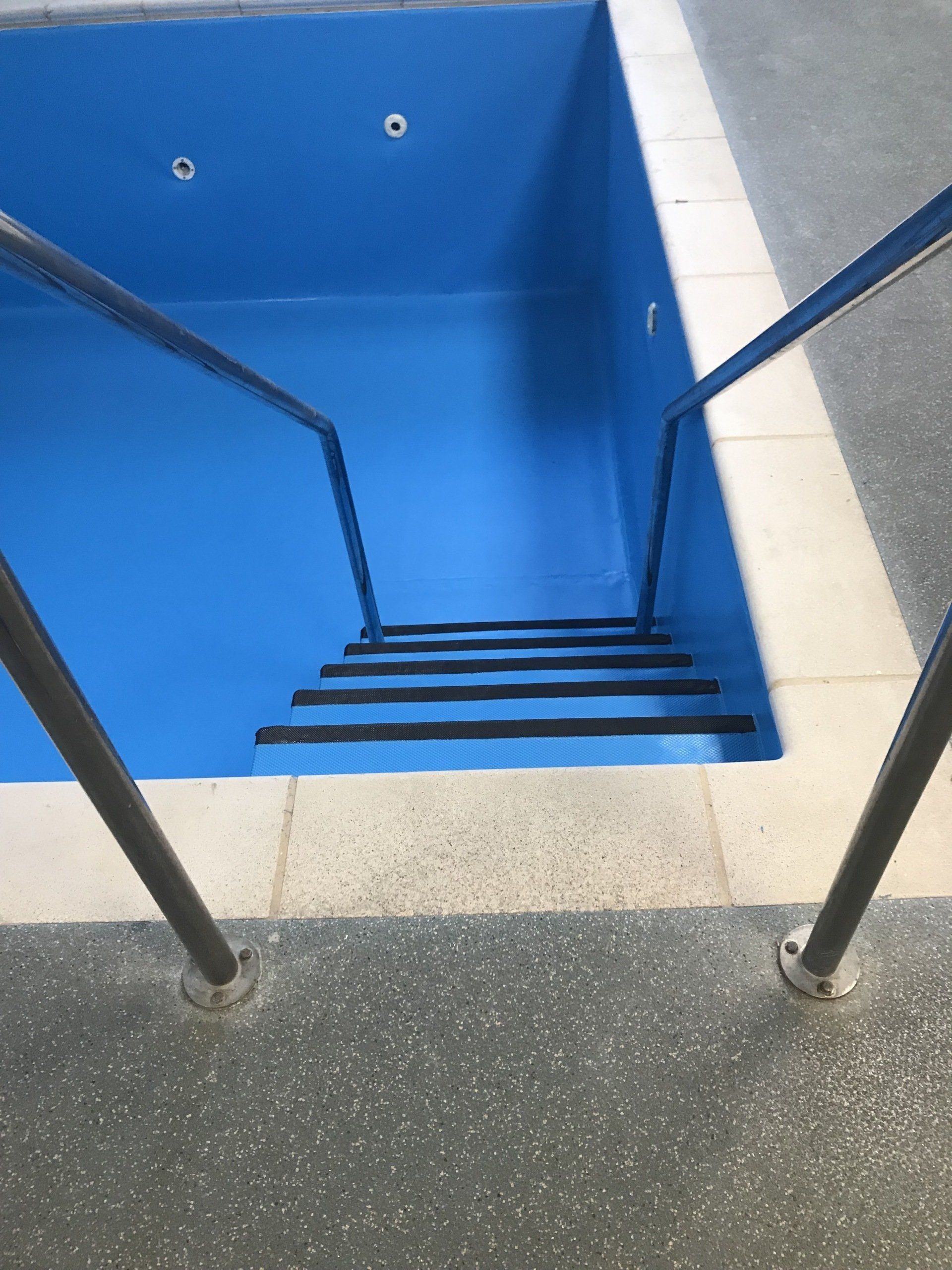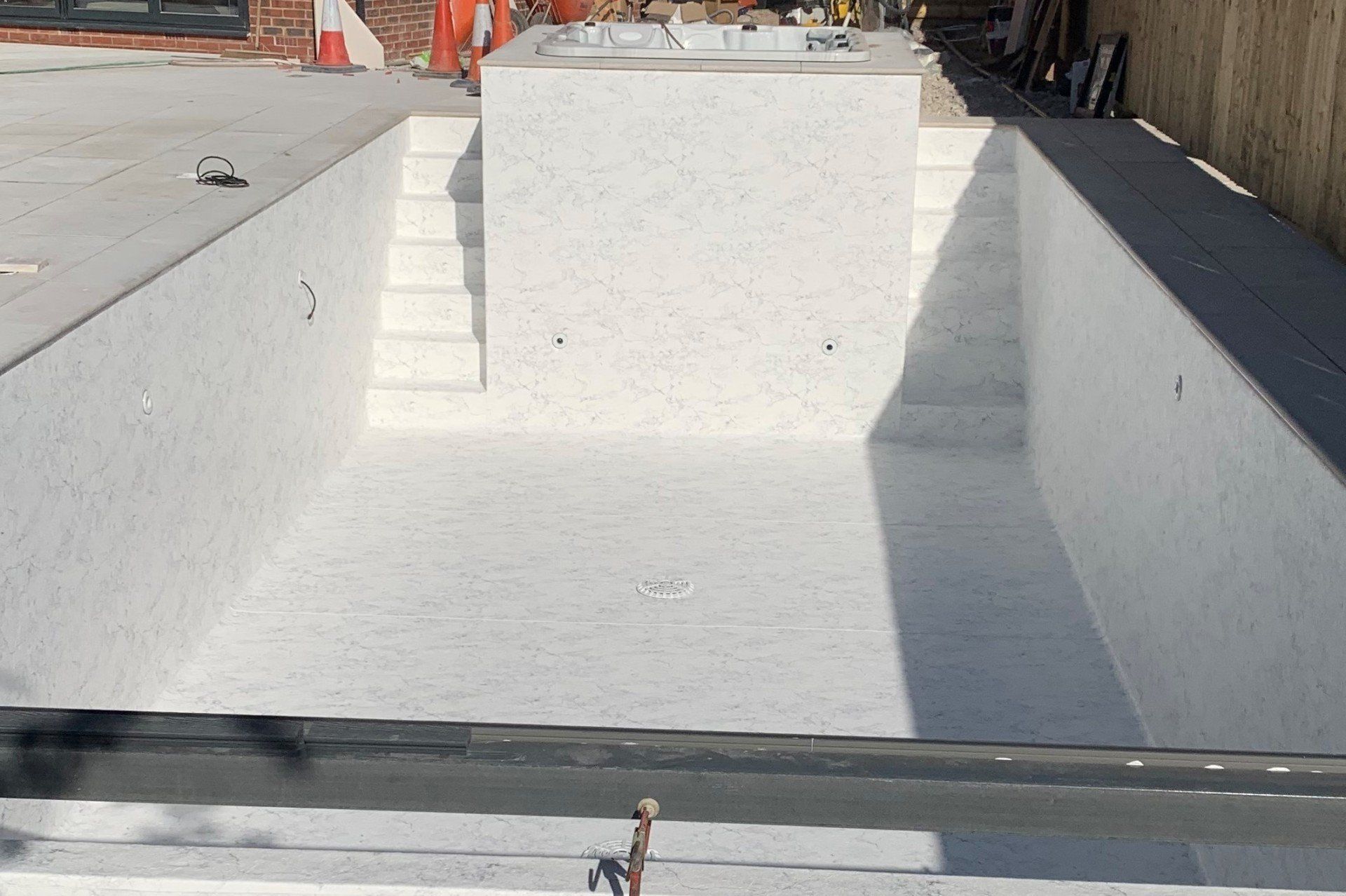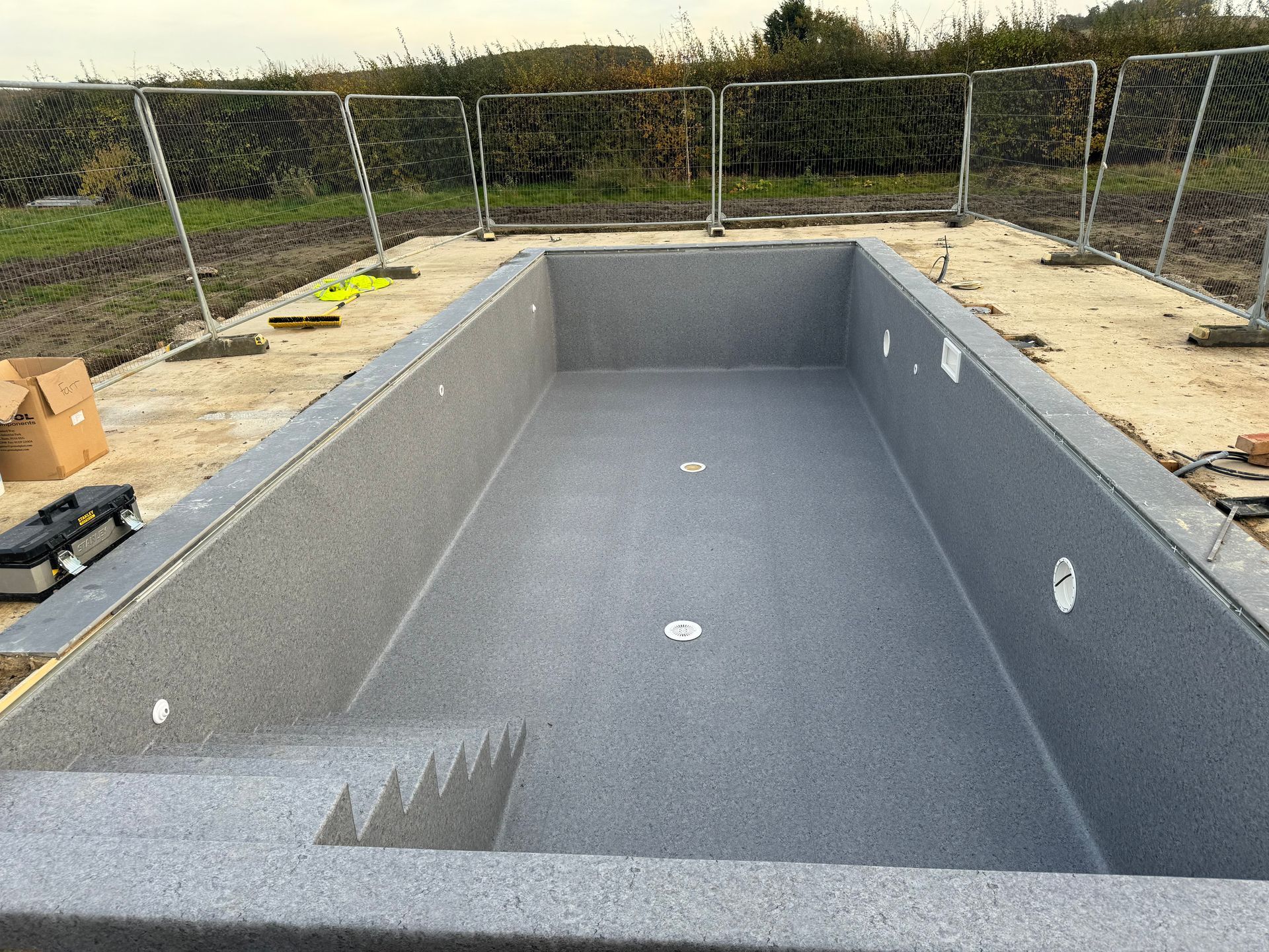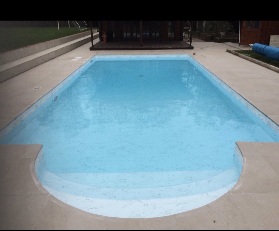 Water-filled Blue Sparks pool with Stoneflex Bazelet steps