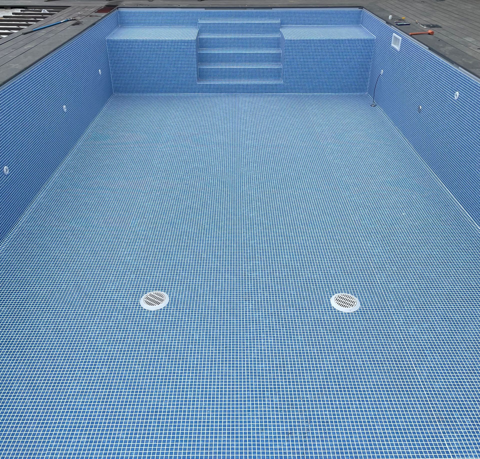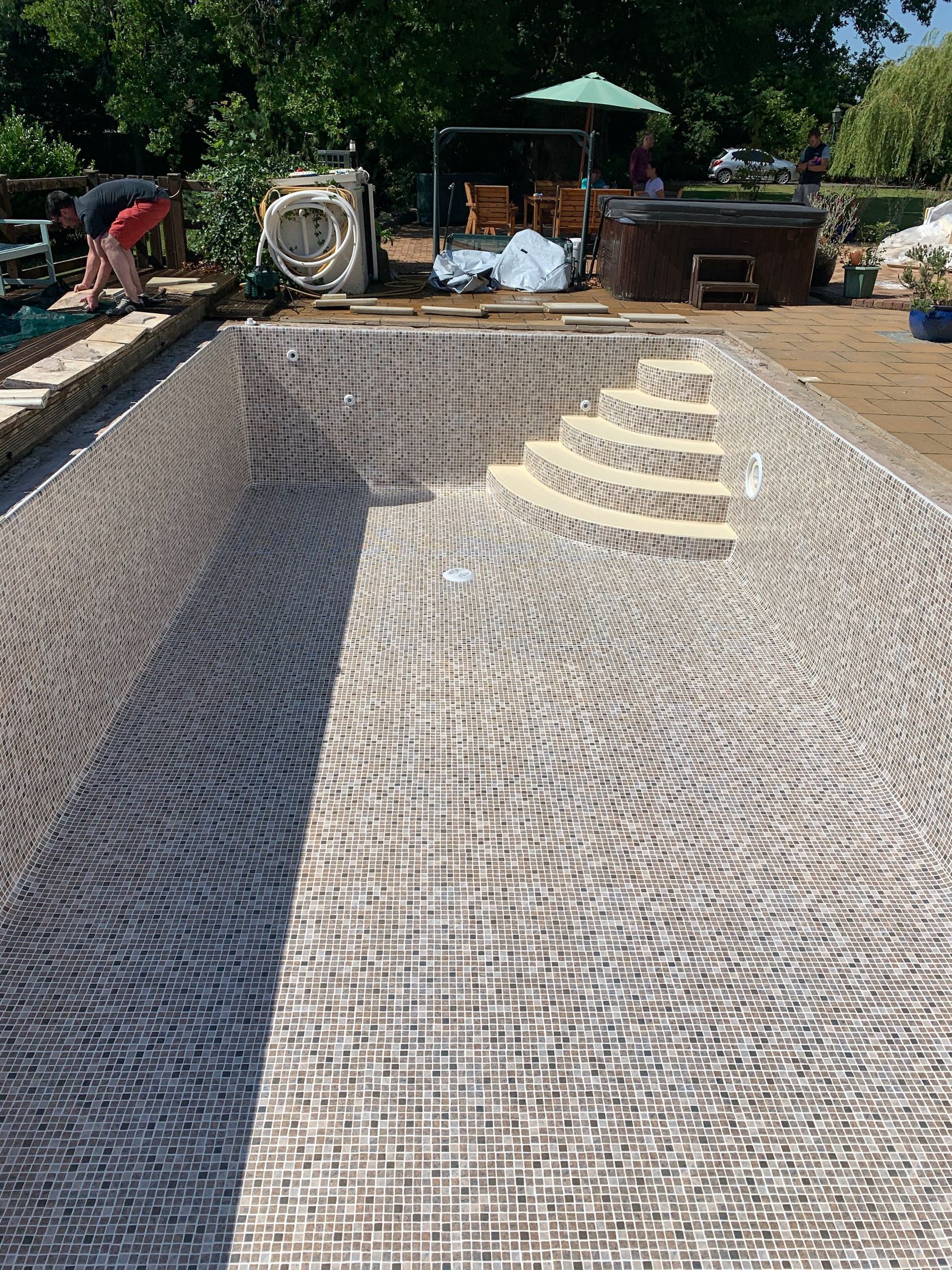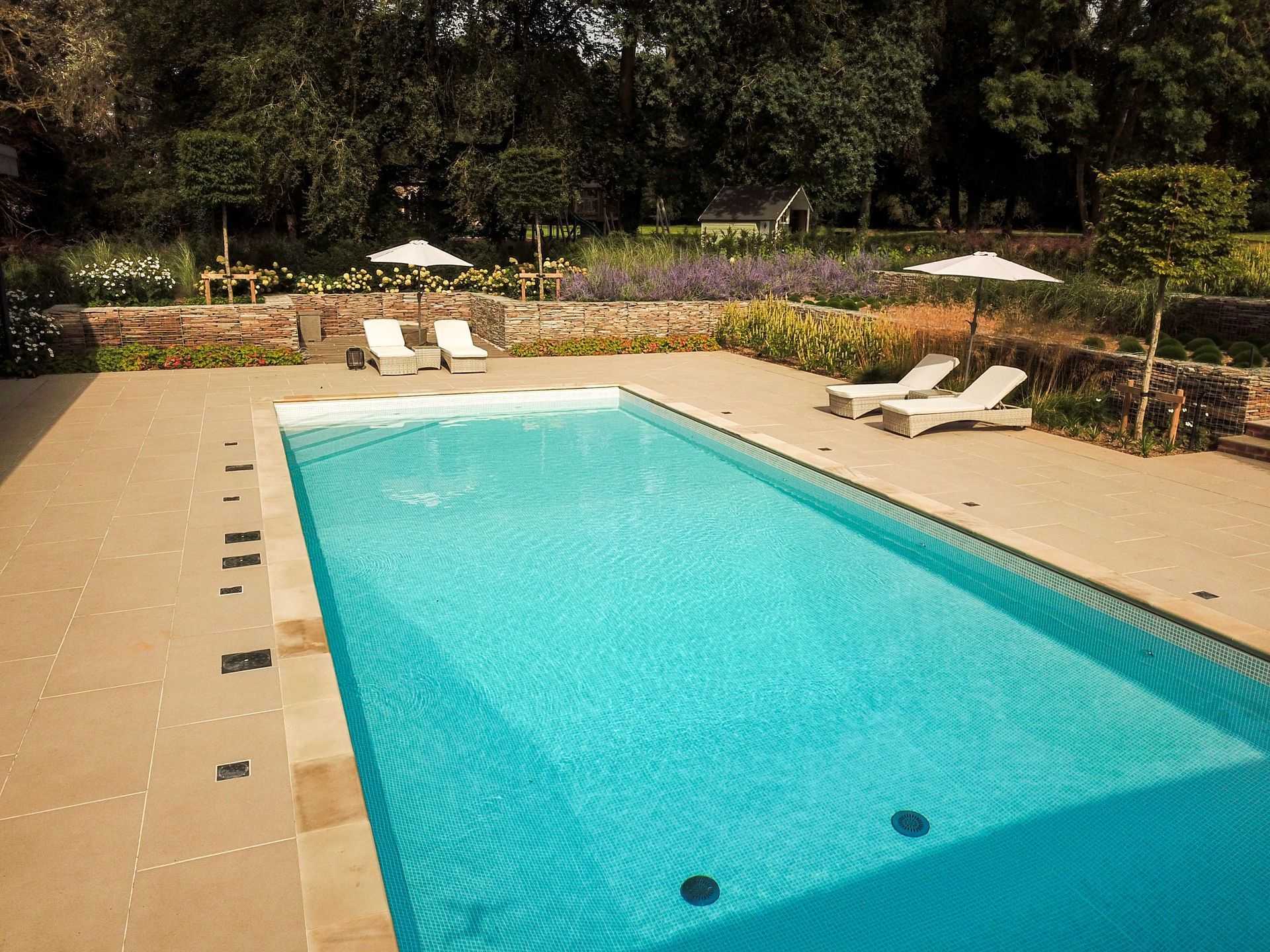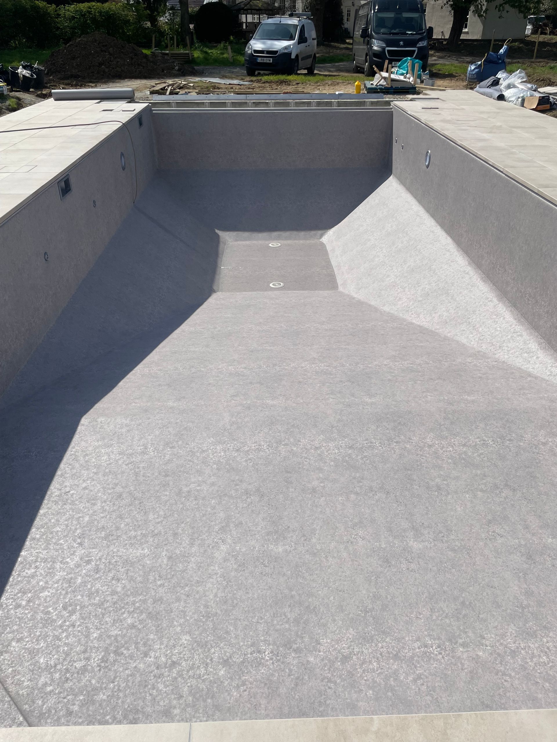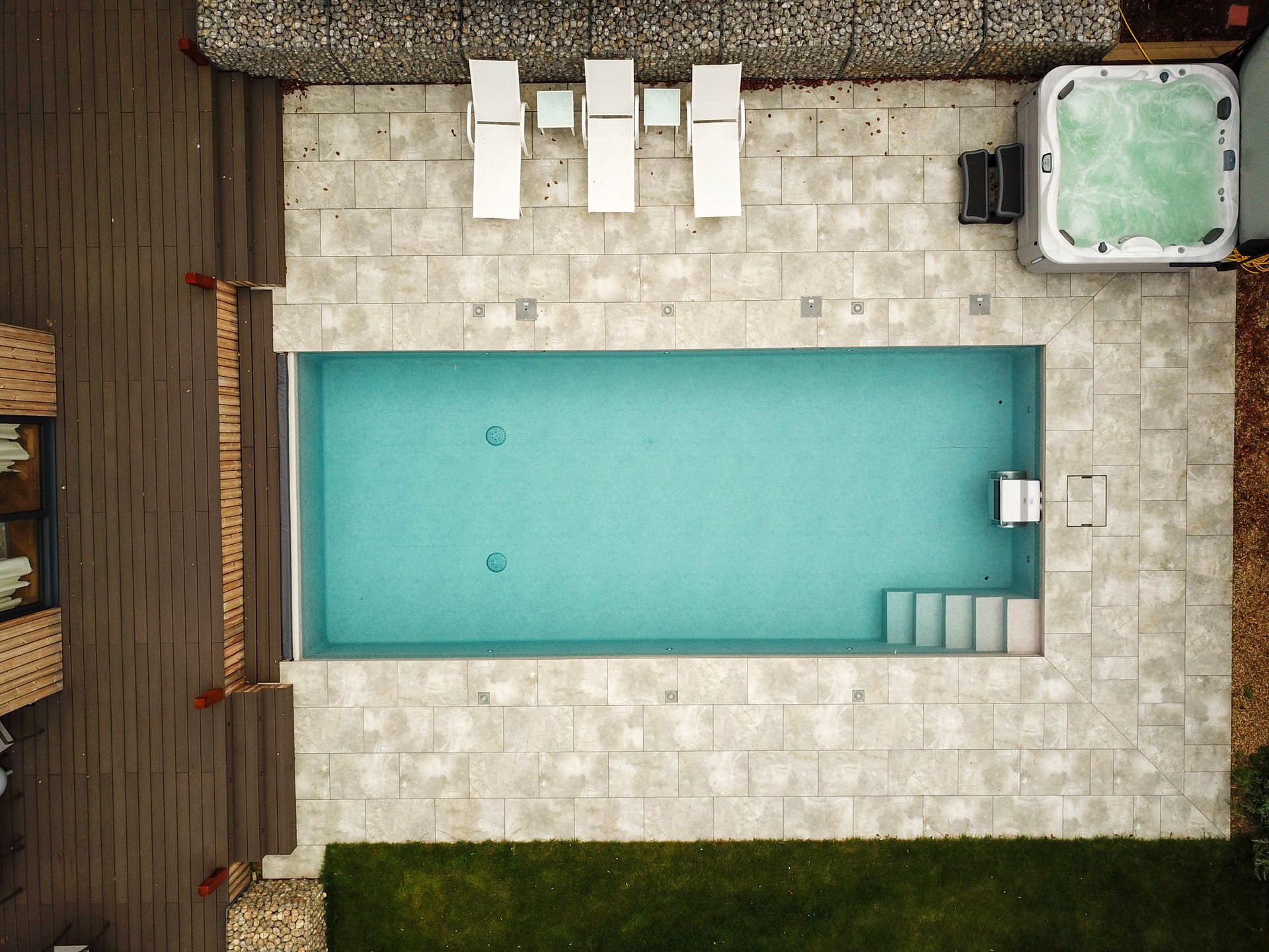 Water-filled Blue Sparks pool with Stoneflex Bazelet steps
