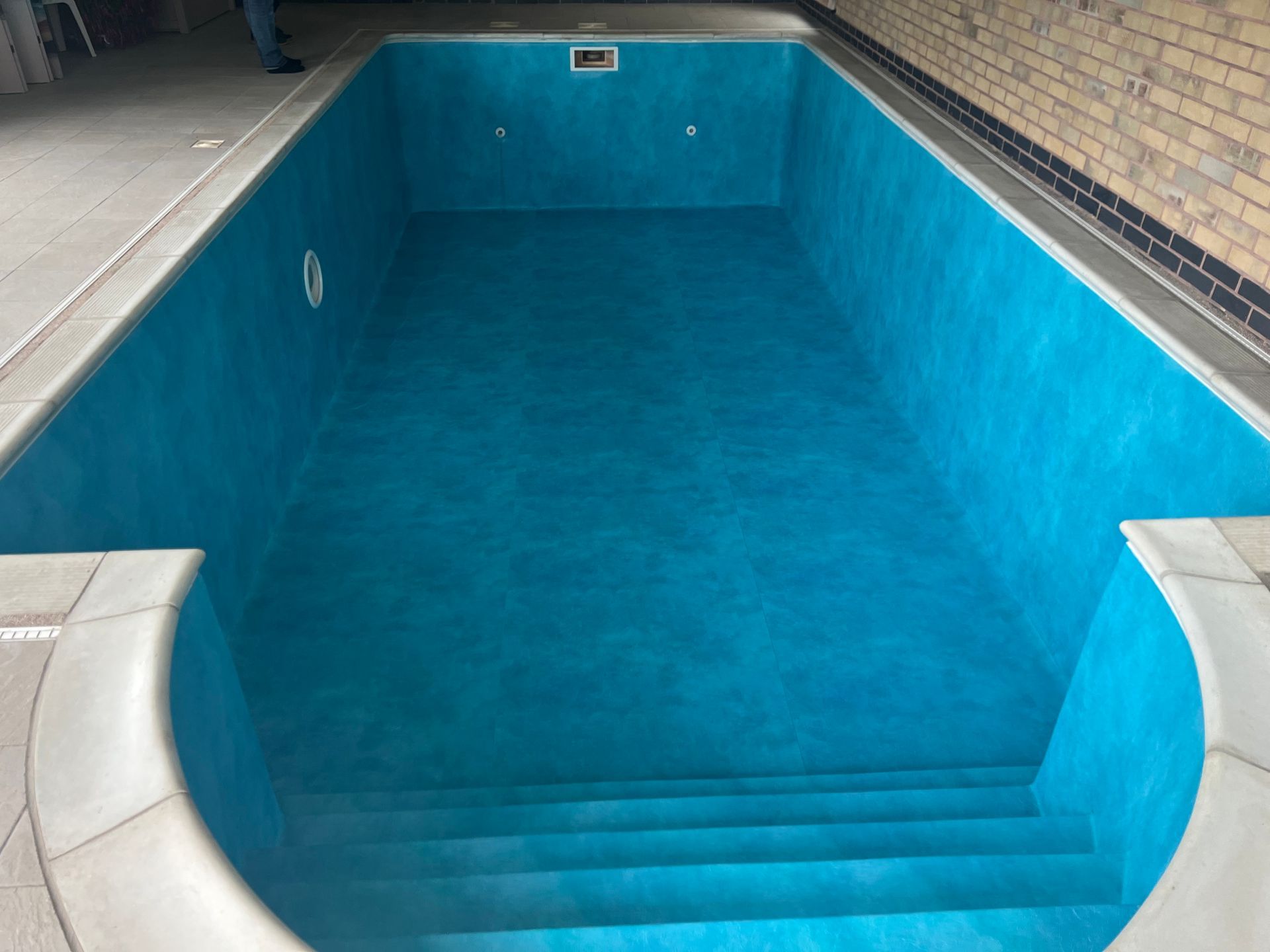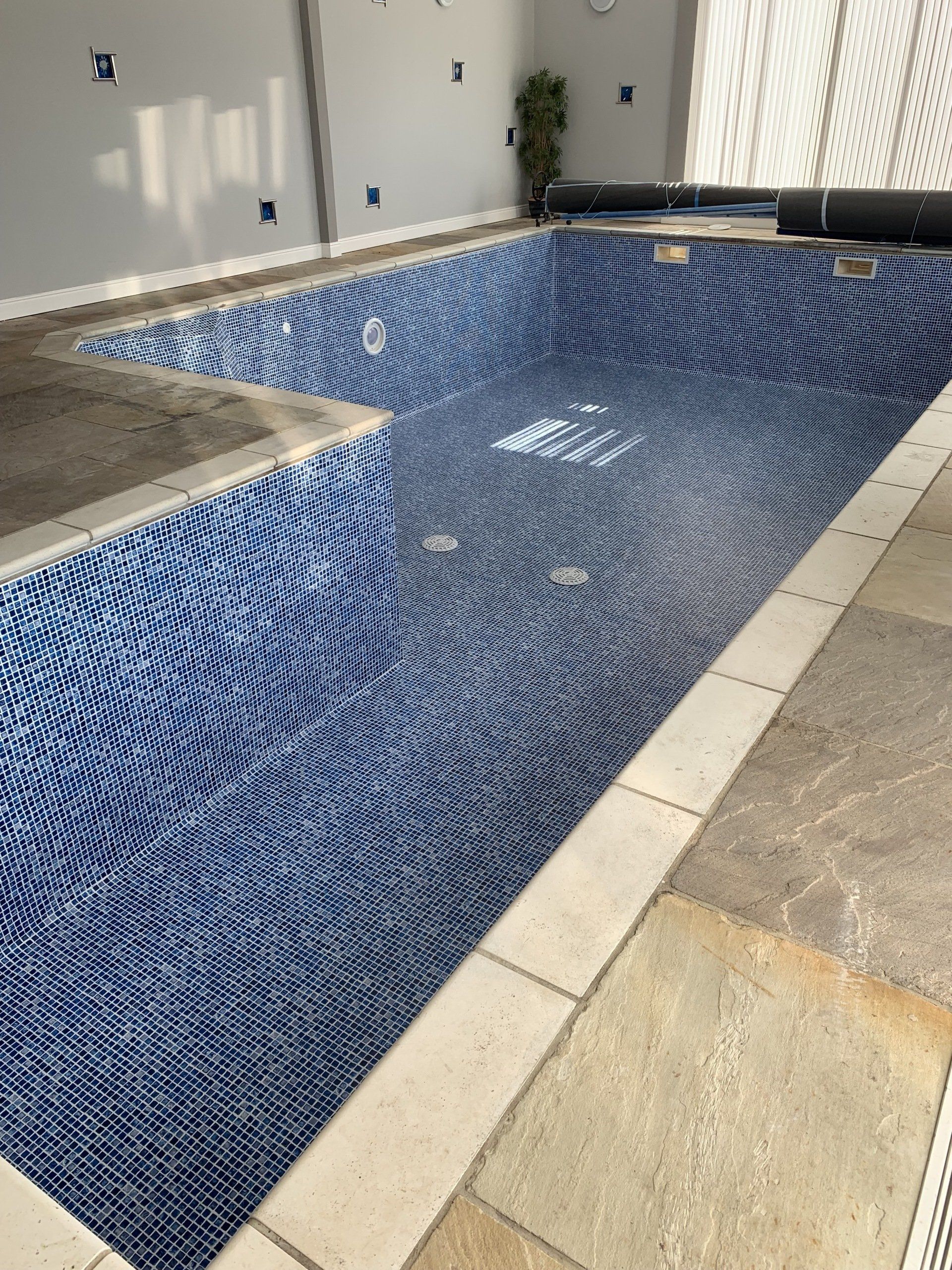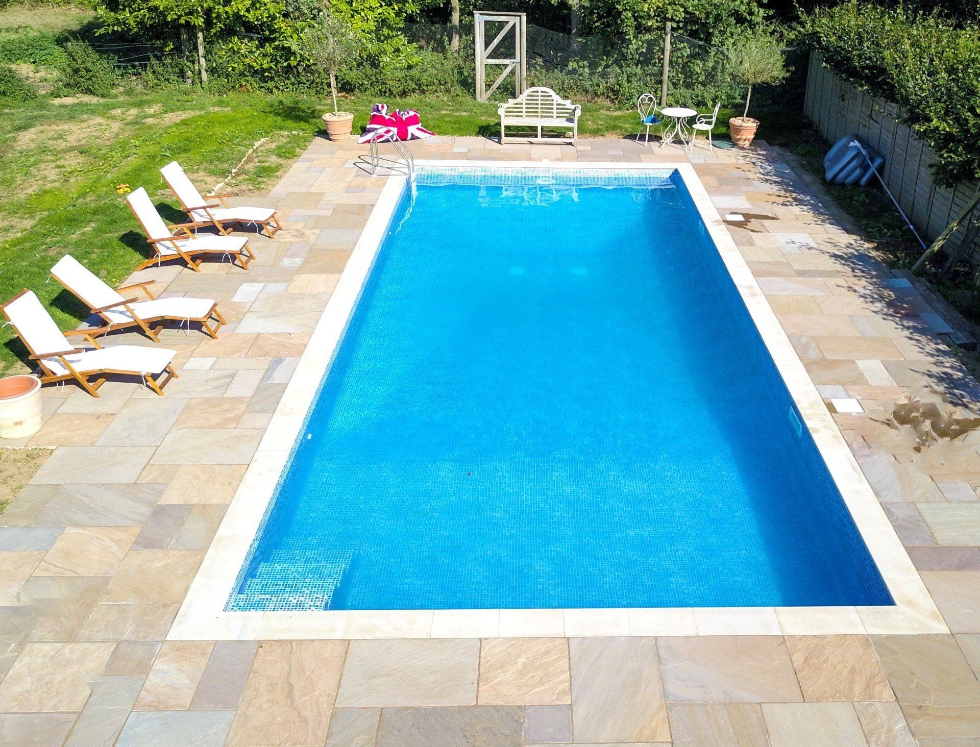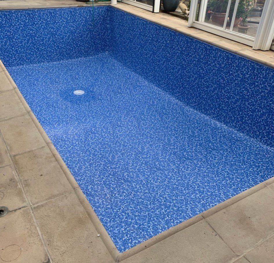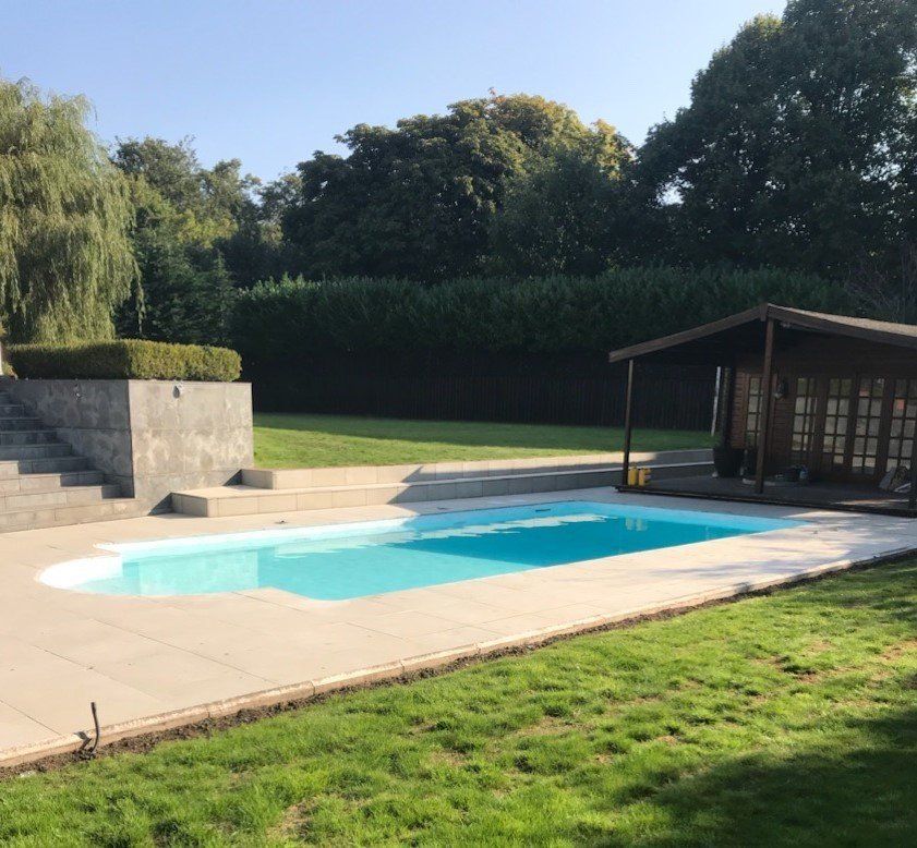 Water-filled Blue Sparks pool with Stoneflex Bazelet steps