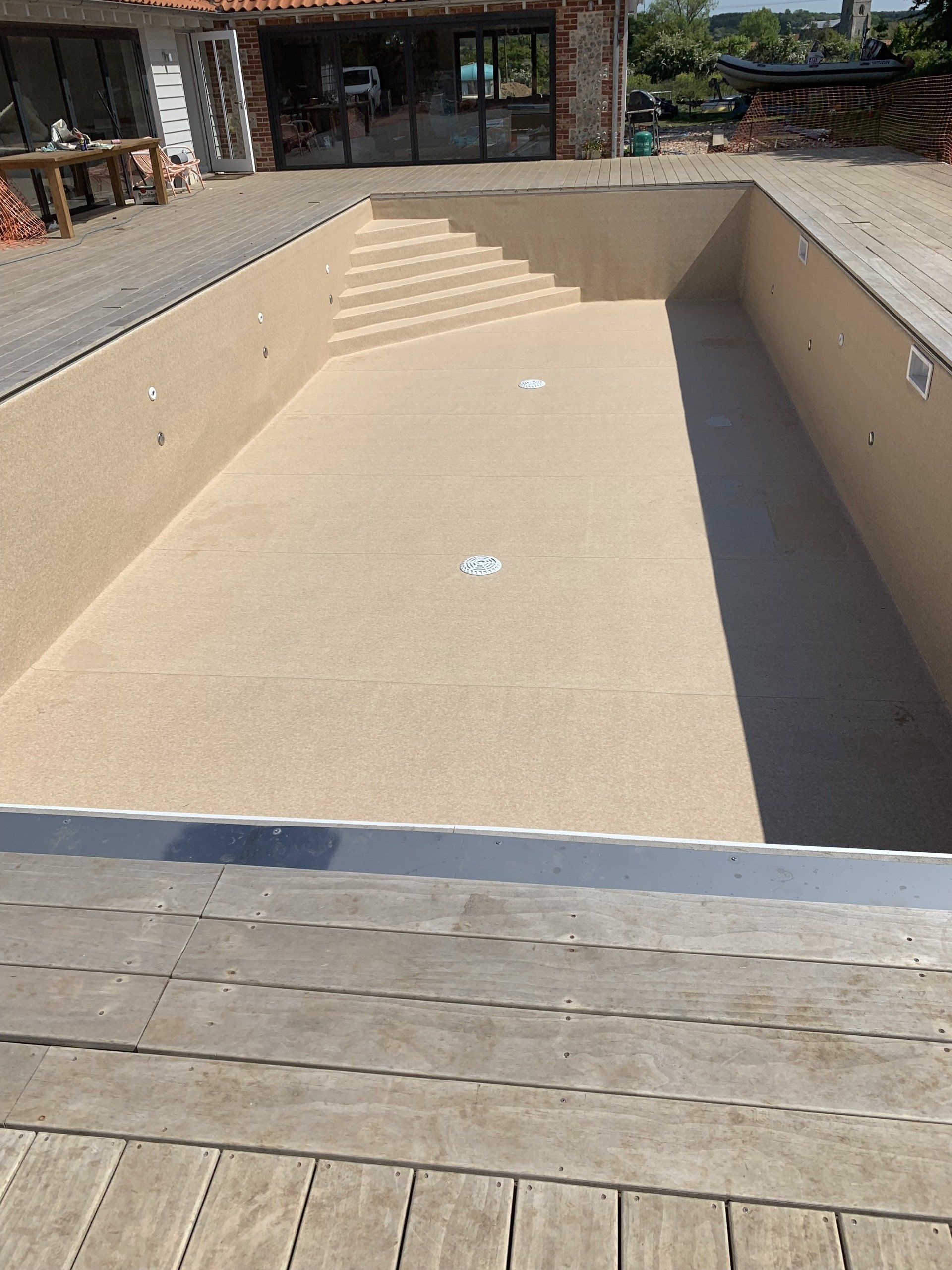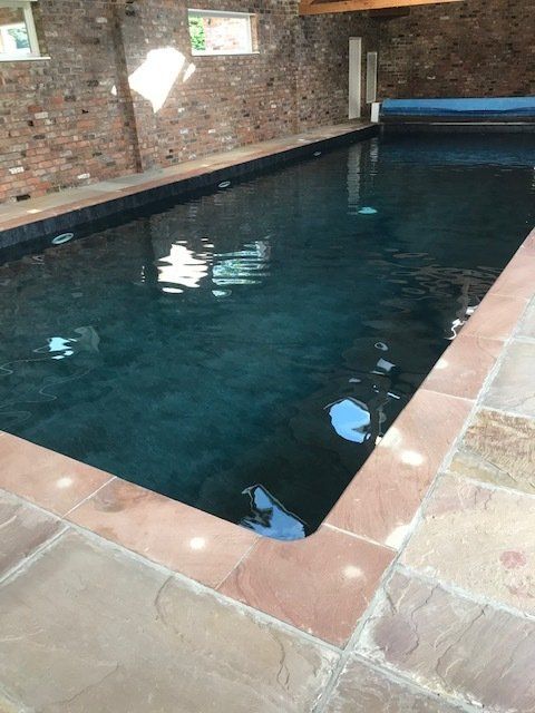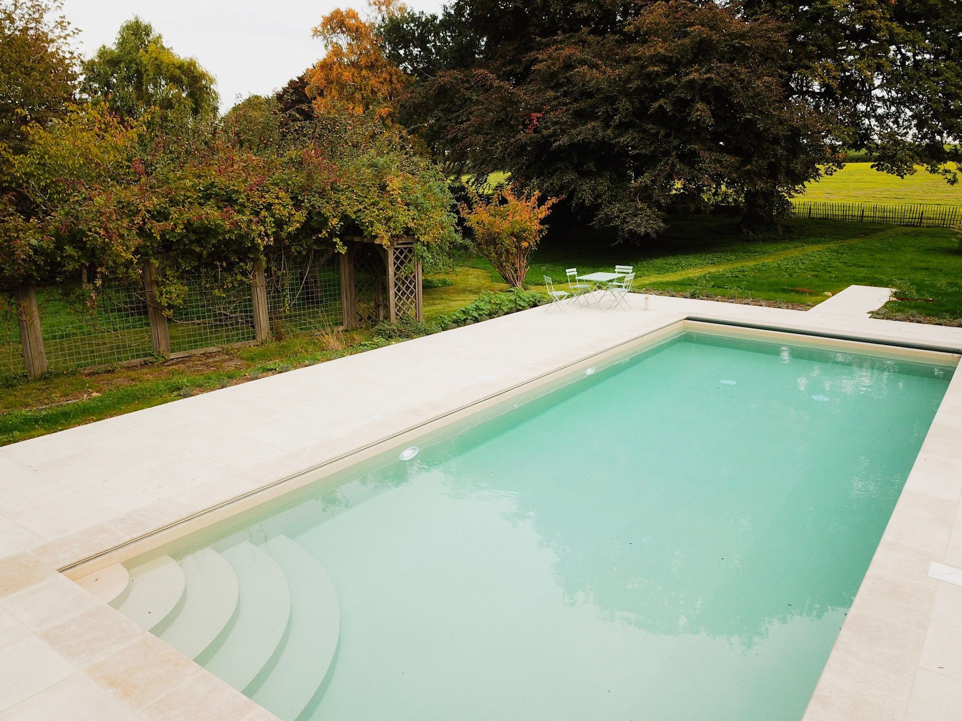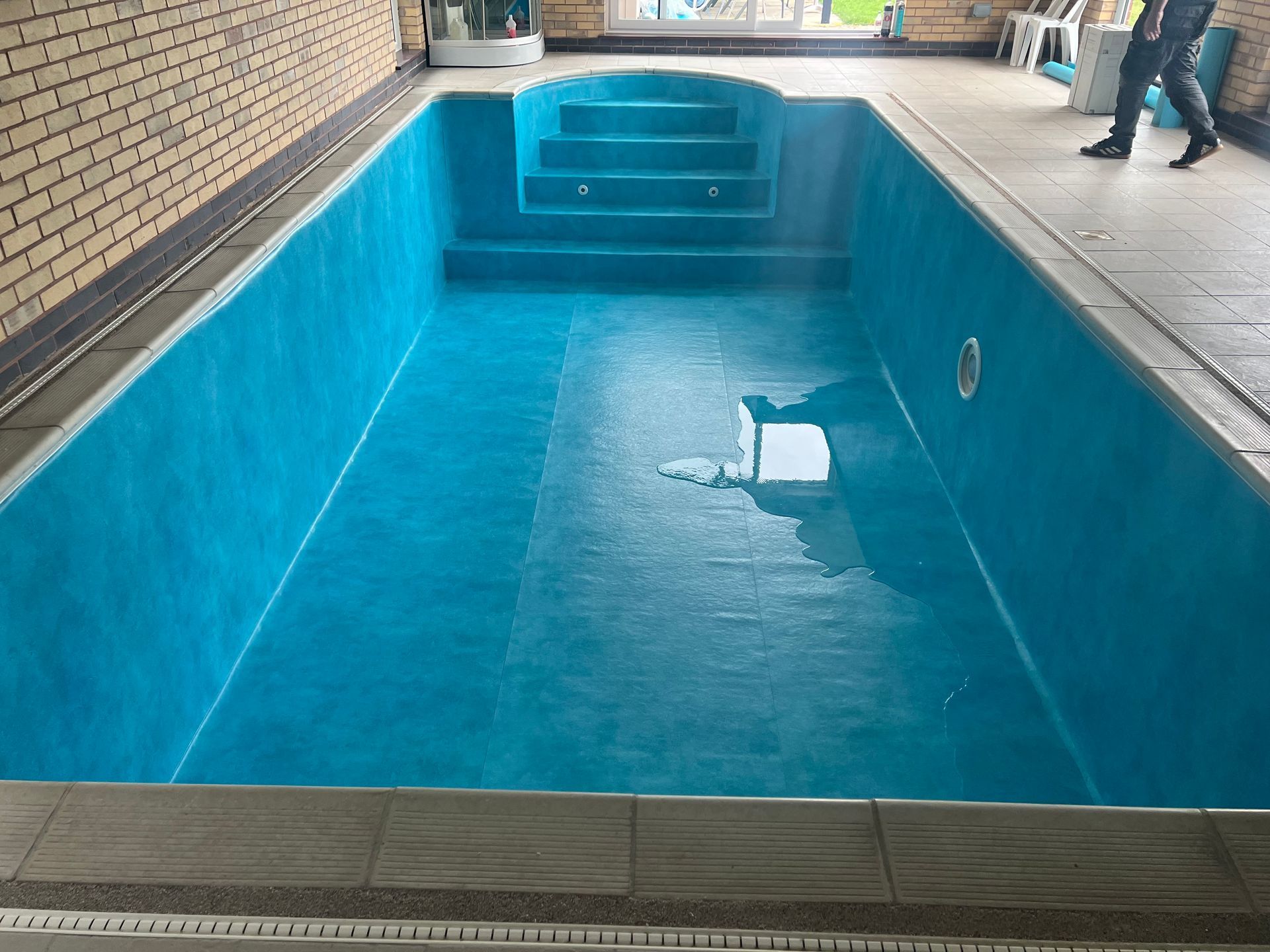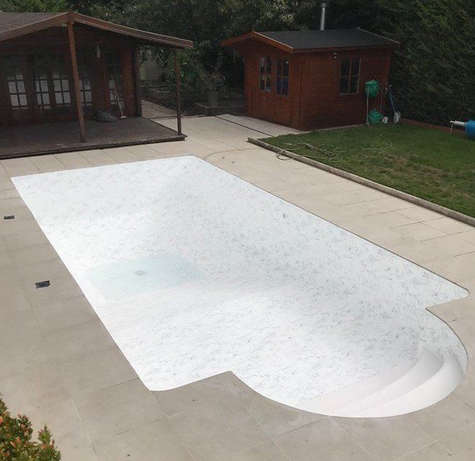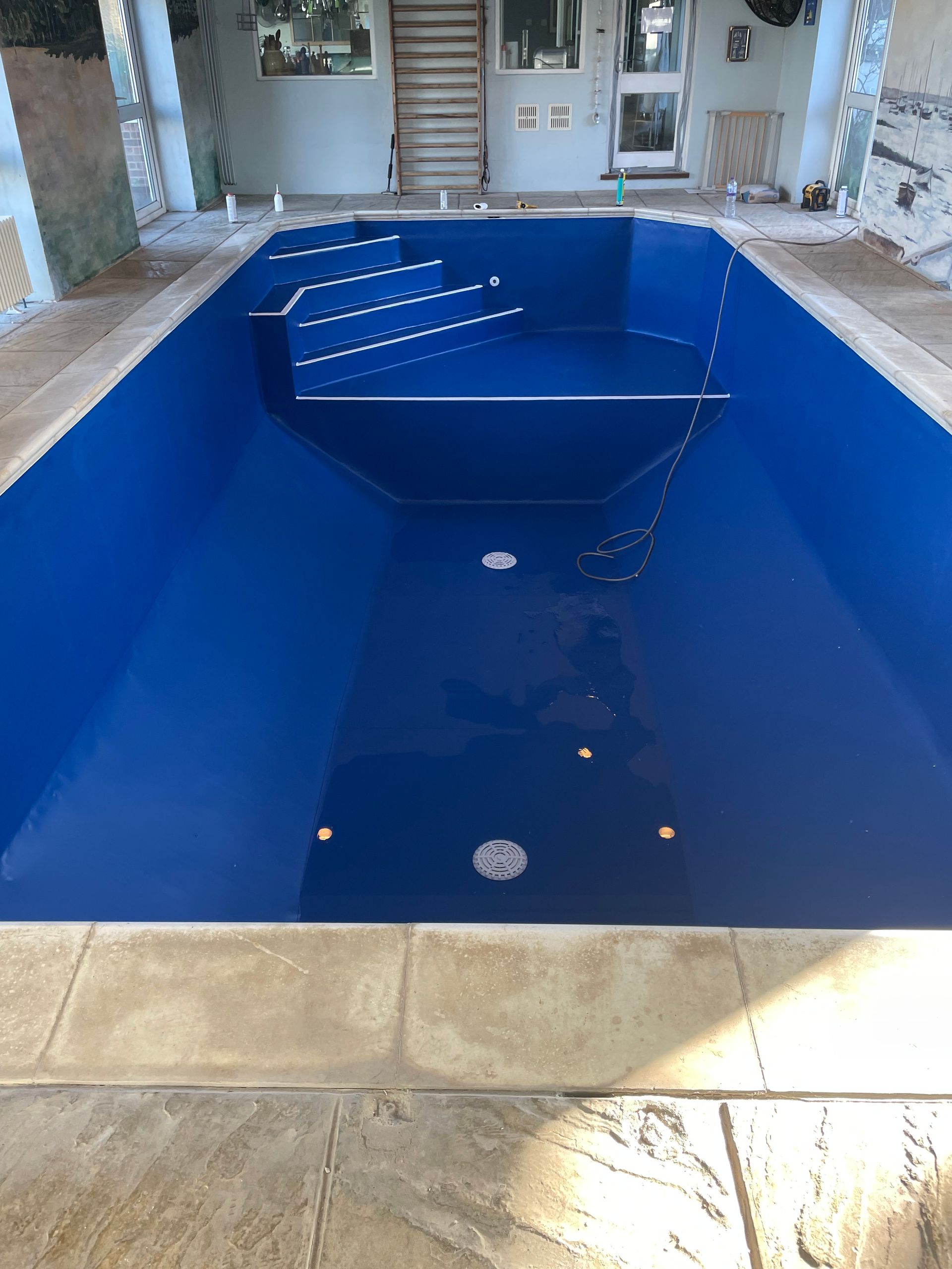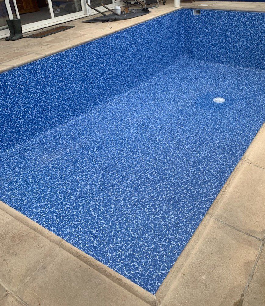 Water-filled Blue Sparks pool with Stoneflex Bazelet steps