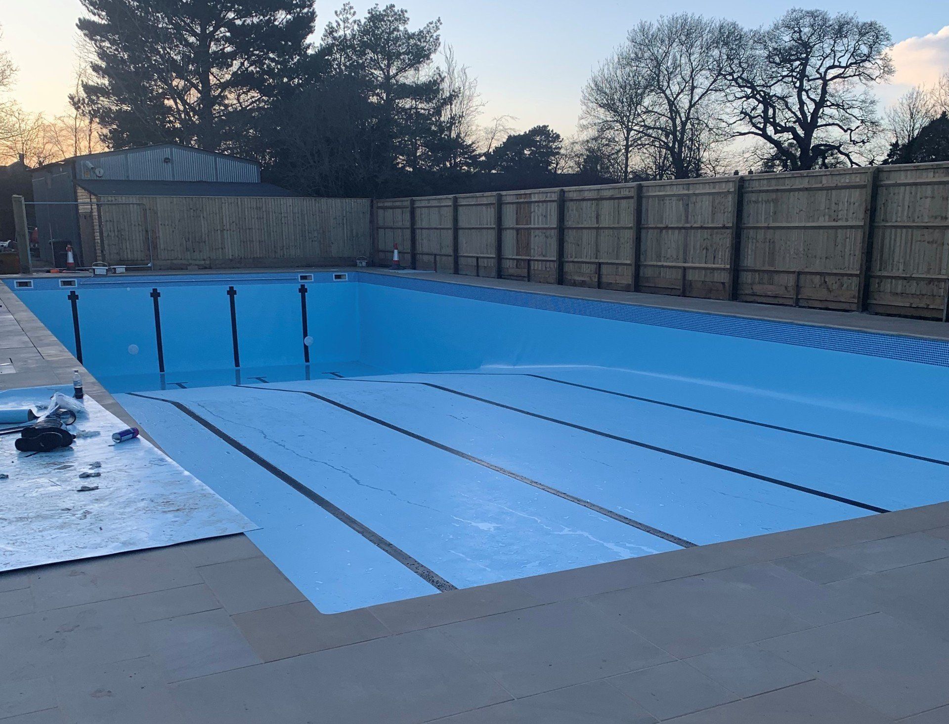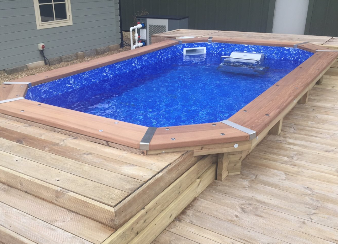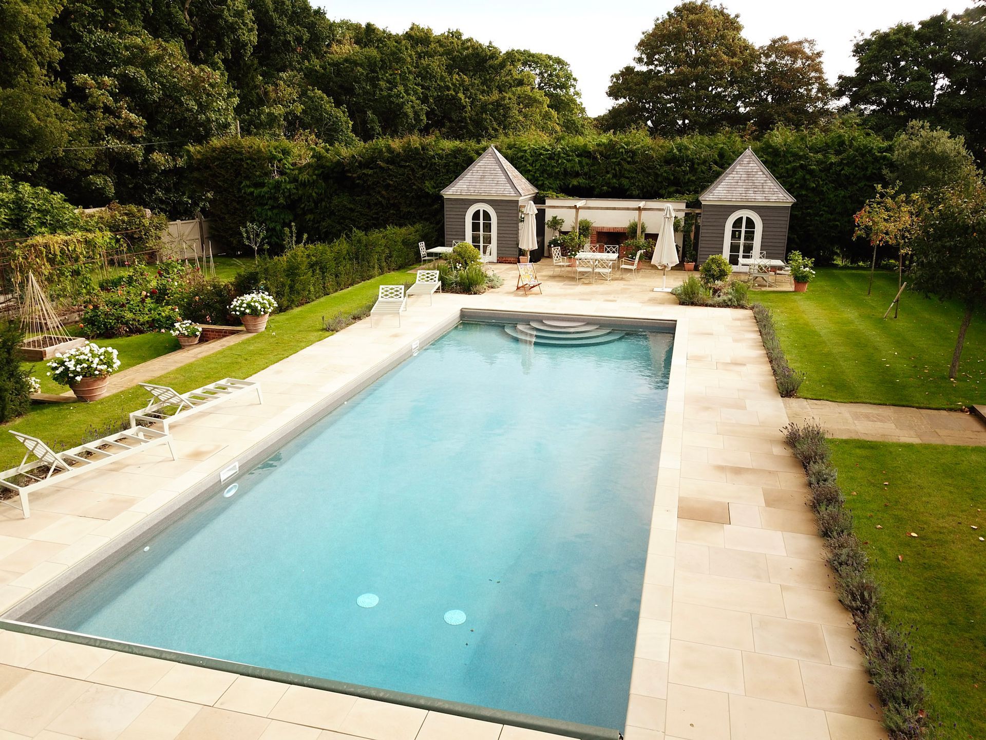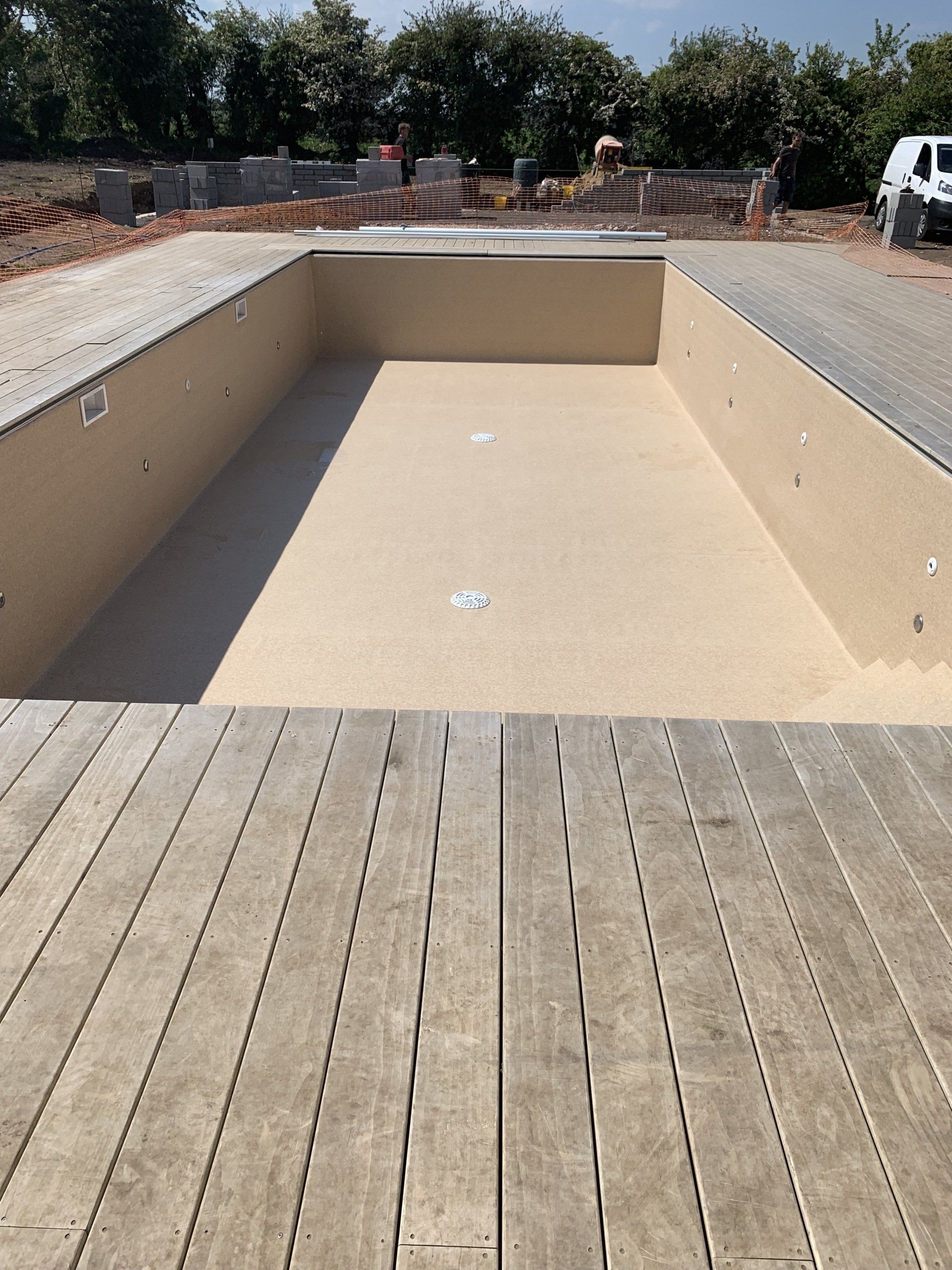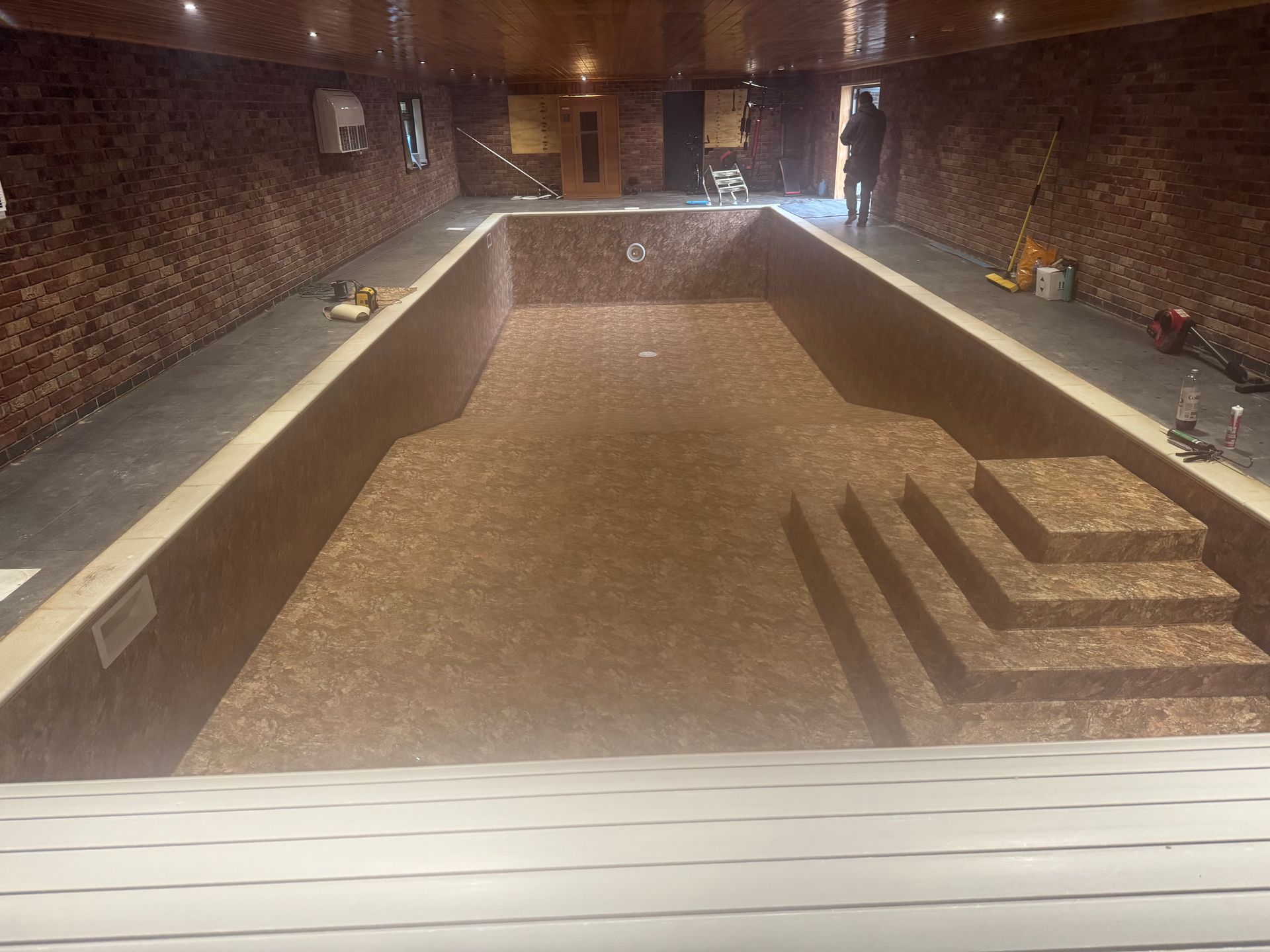Water-filled Blue Sparks pool with Stoneflex Bazelet steps