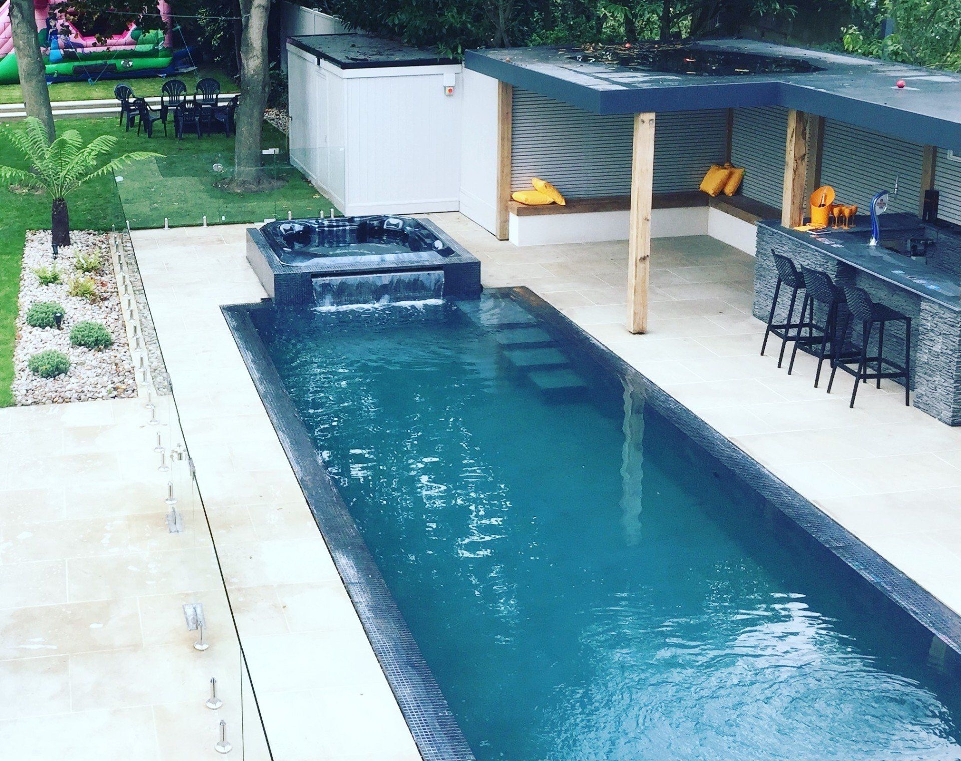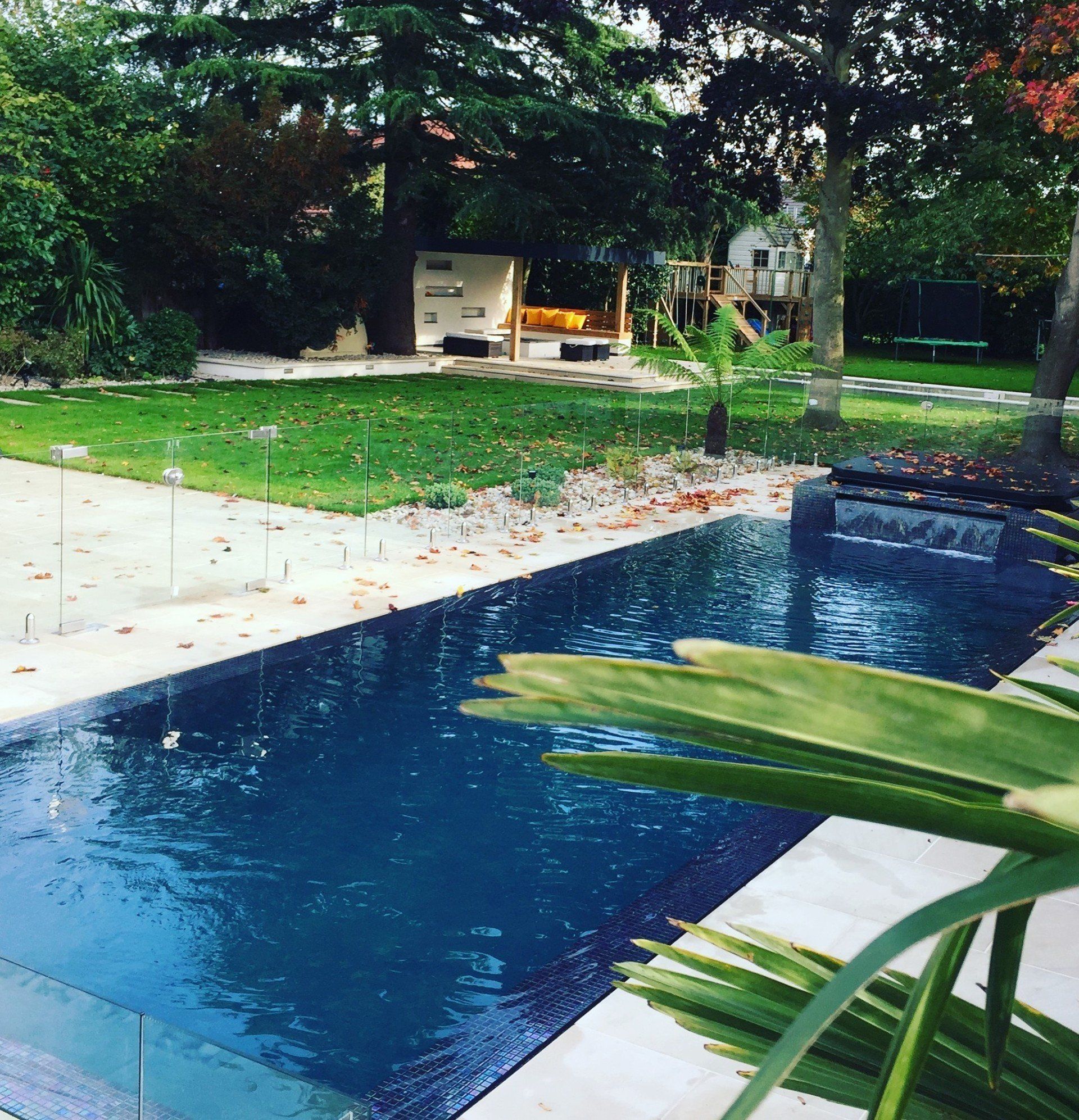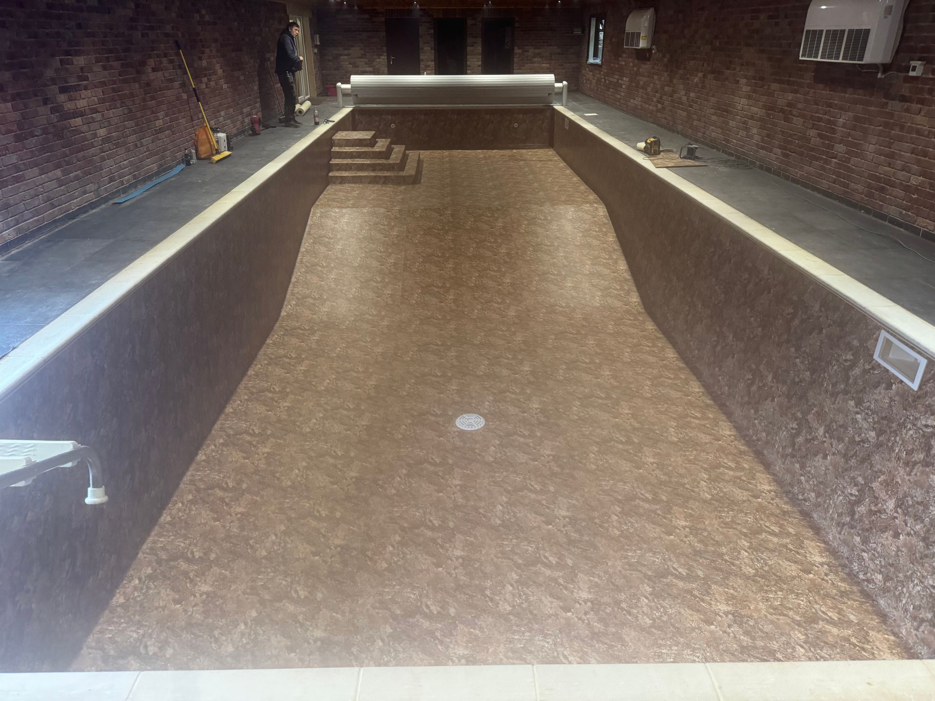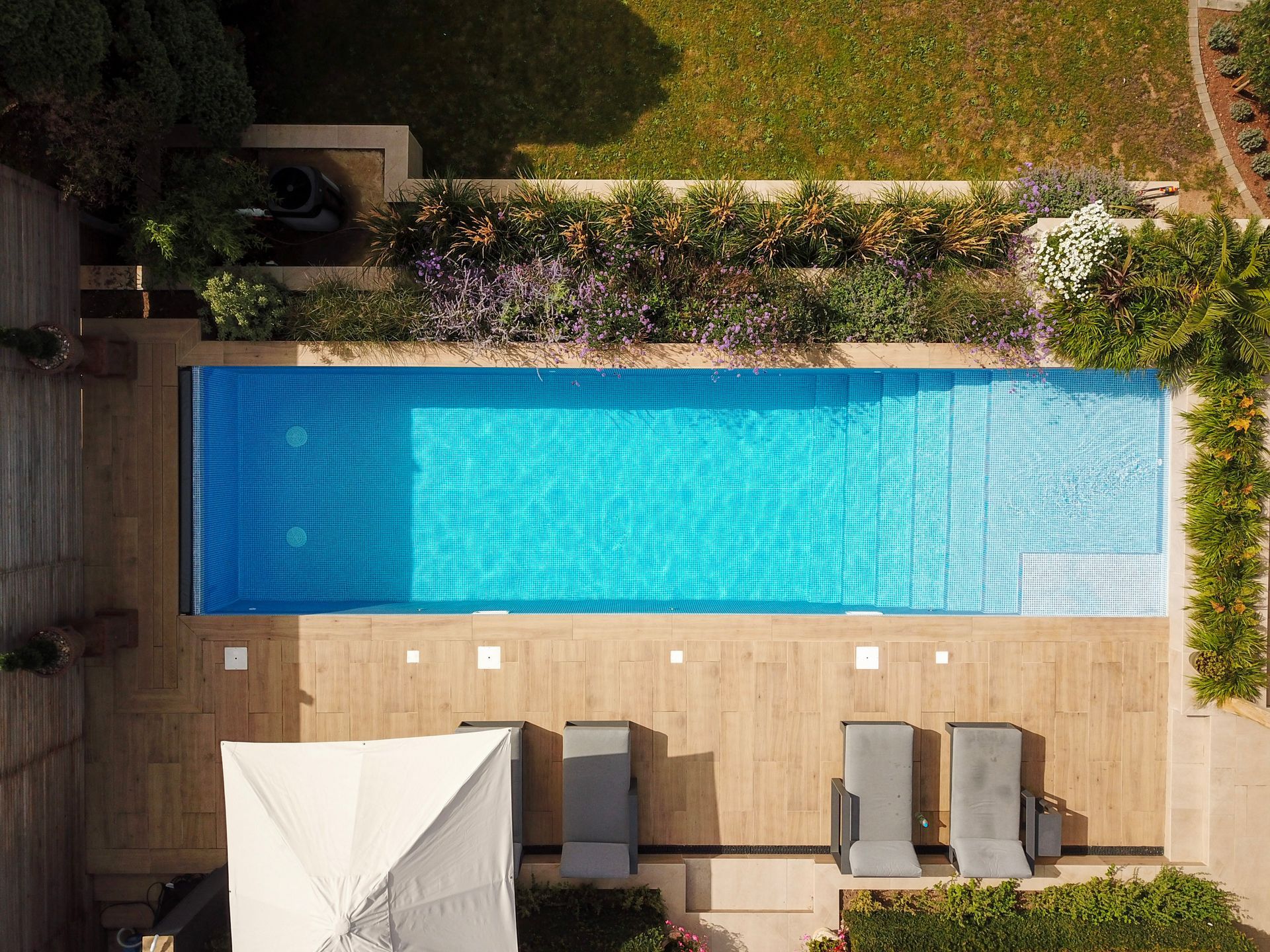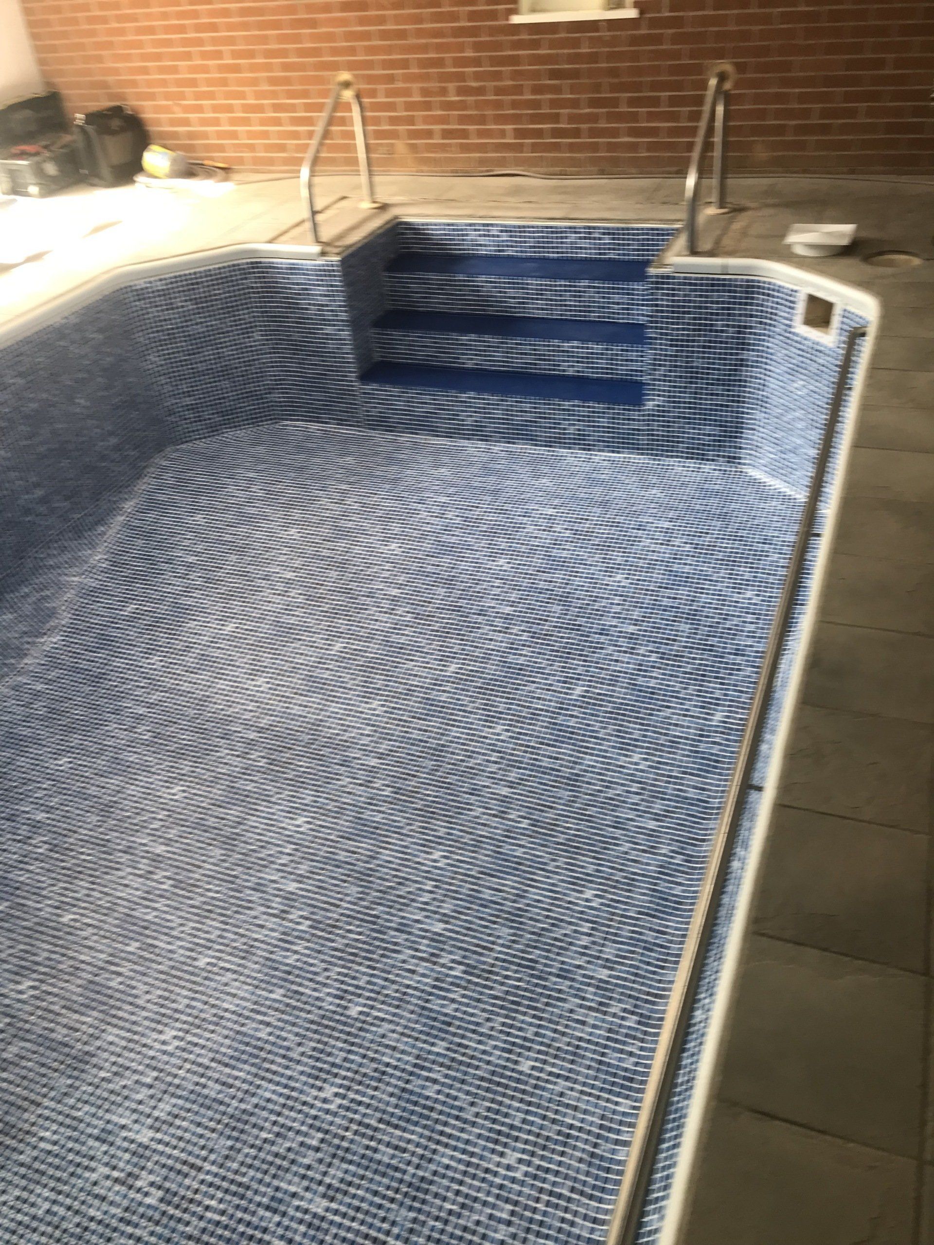 Water-filled Blue Sparks pool with Stoneflex Bazelet steps