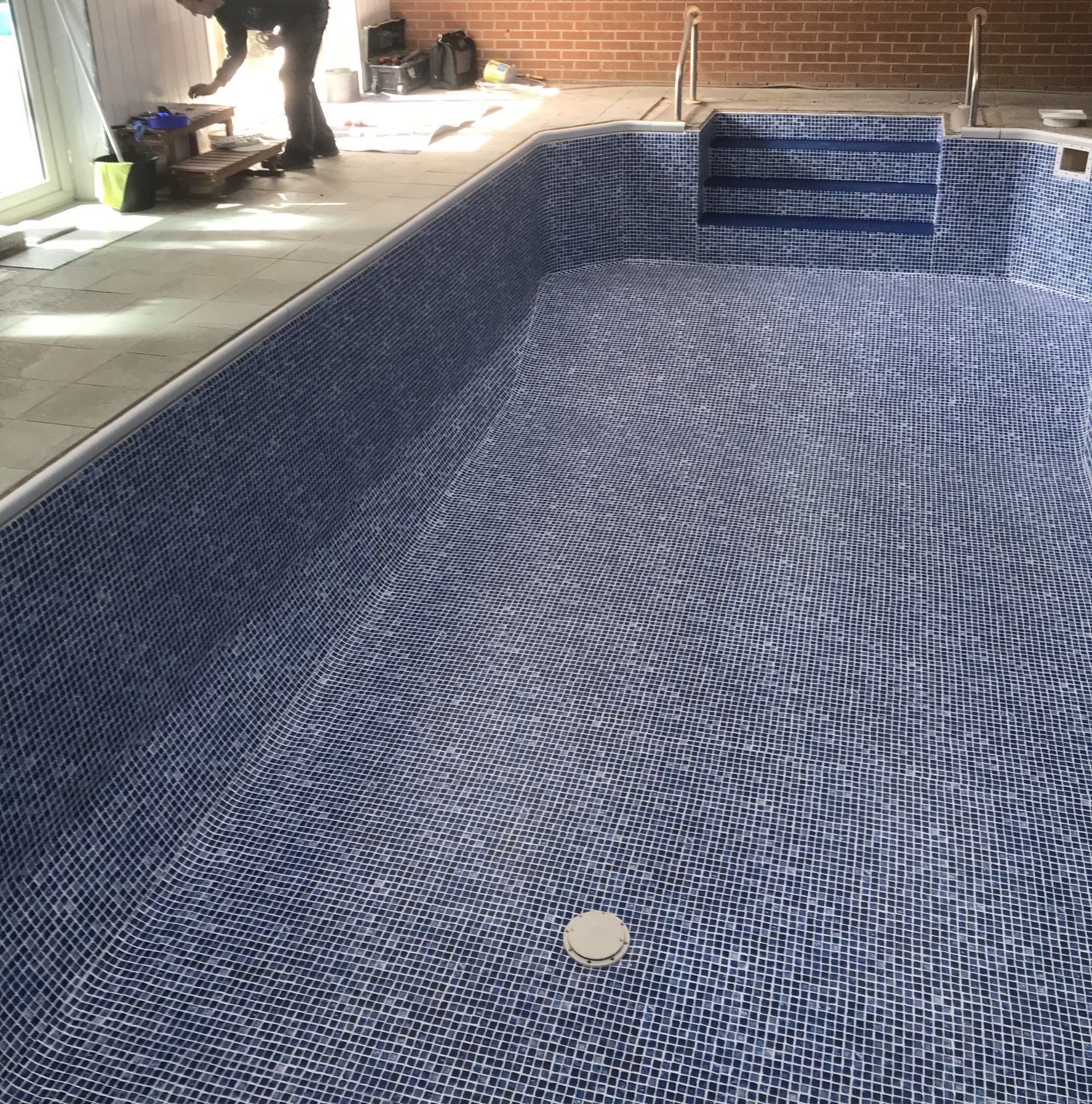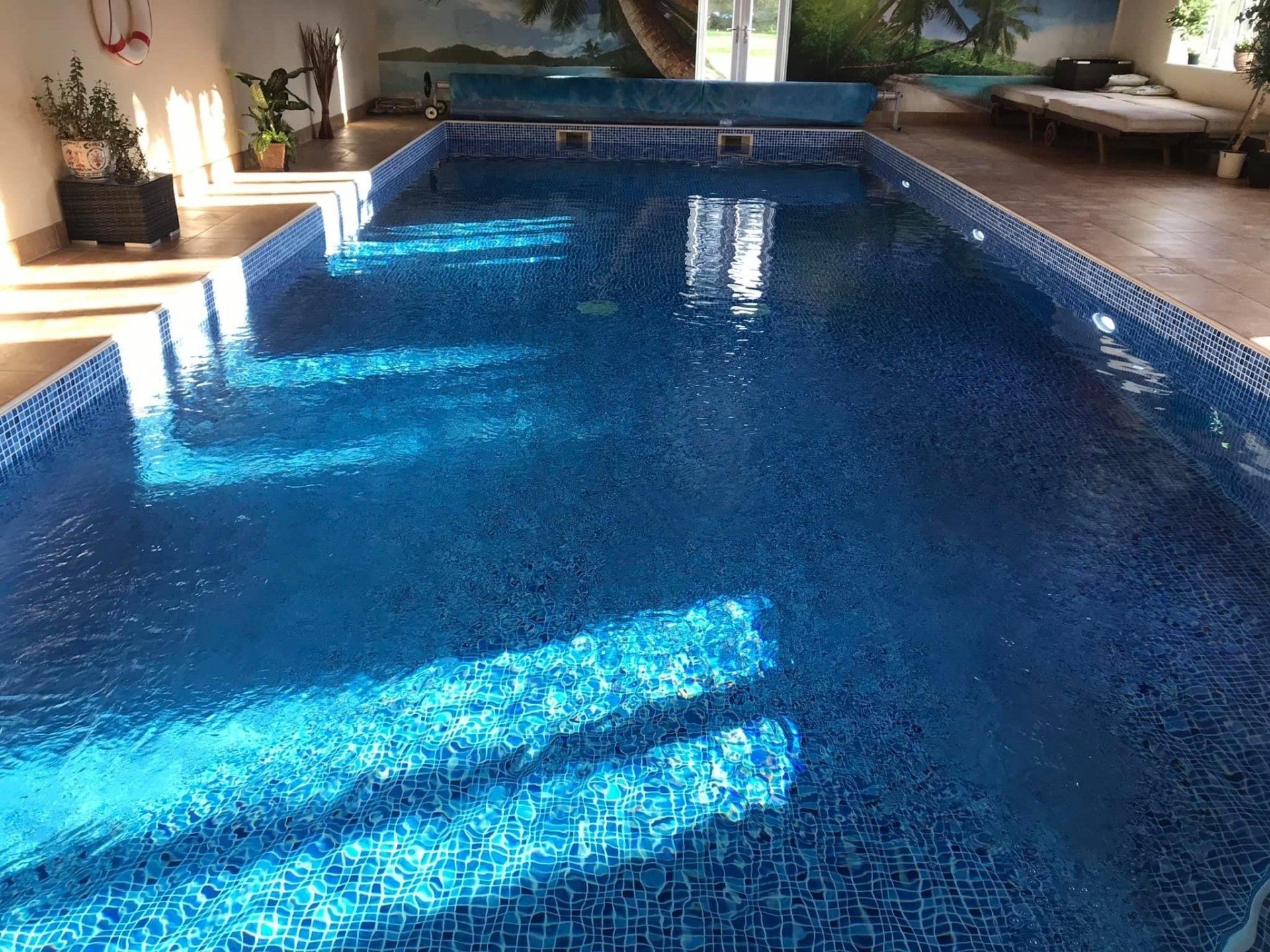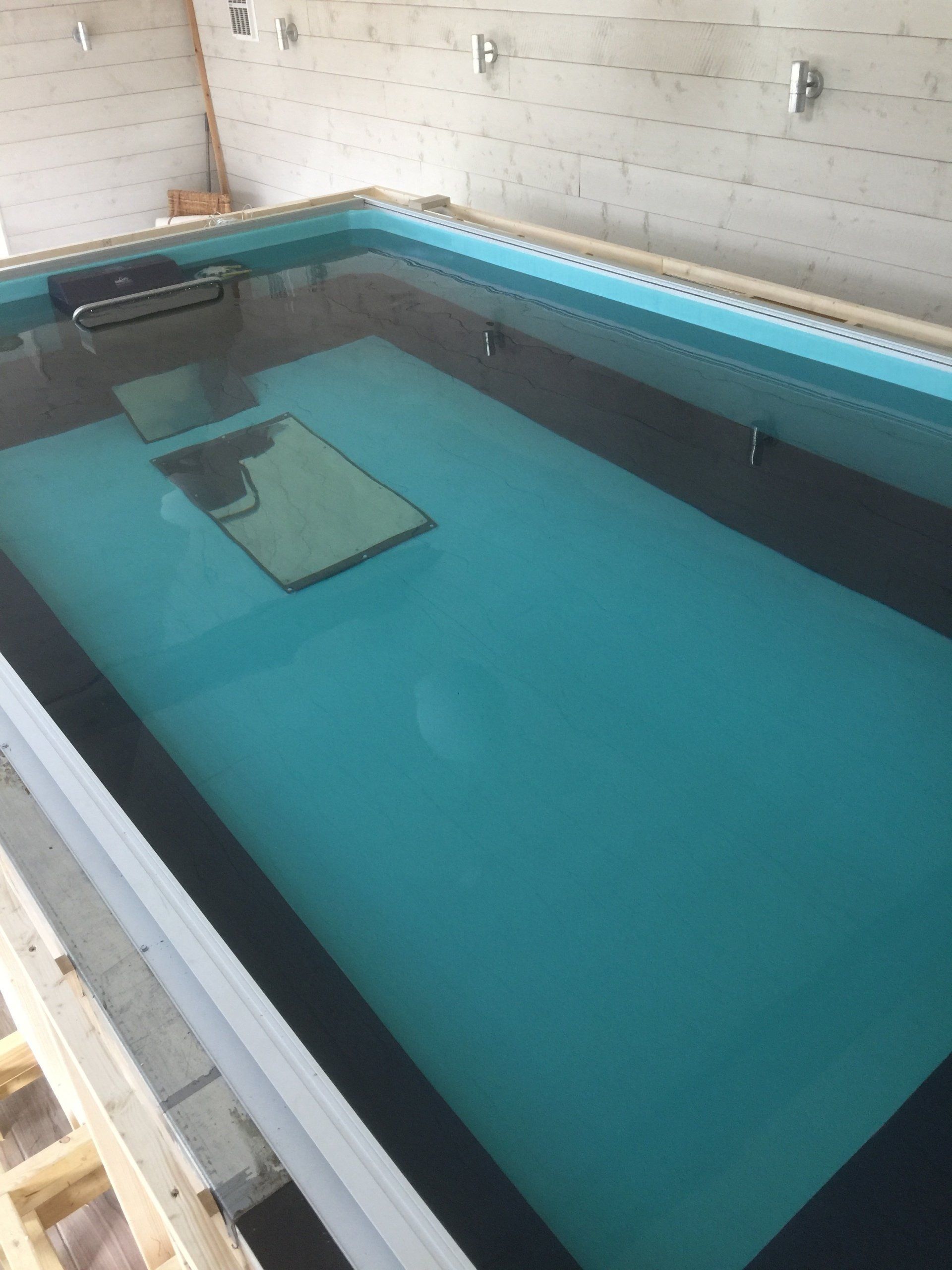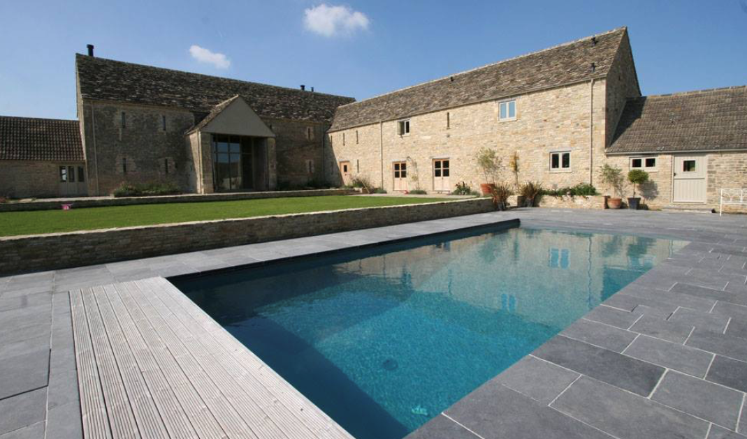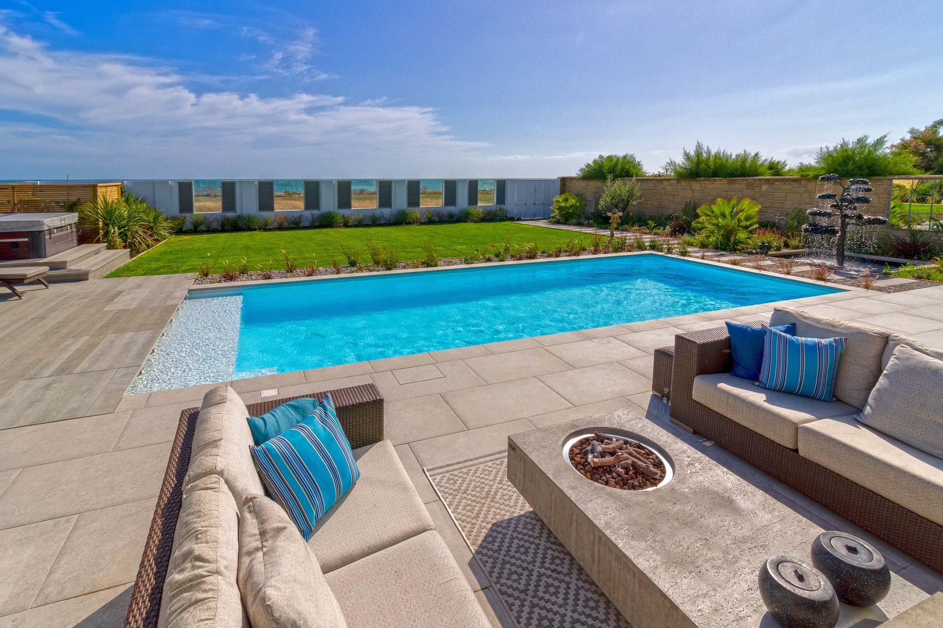 Water-filled Blue Sparks pool with Stoneflex Bazelet steps