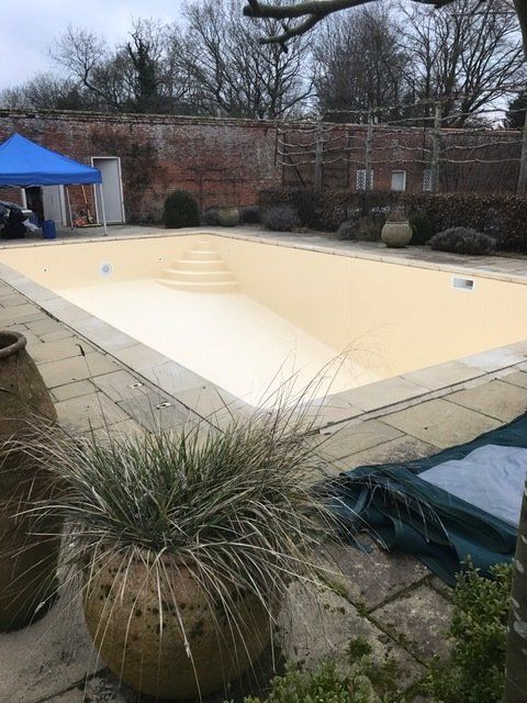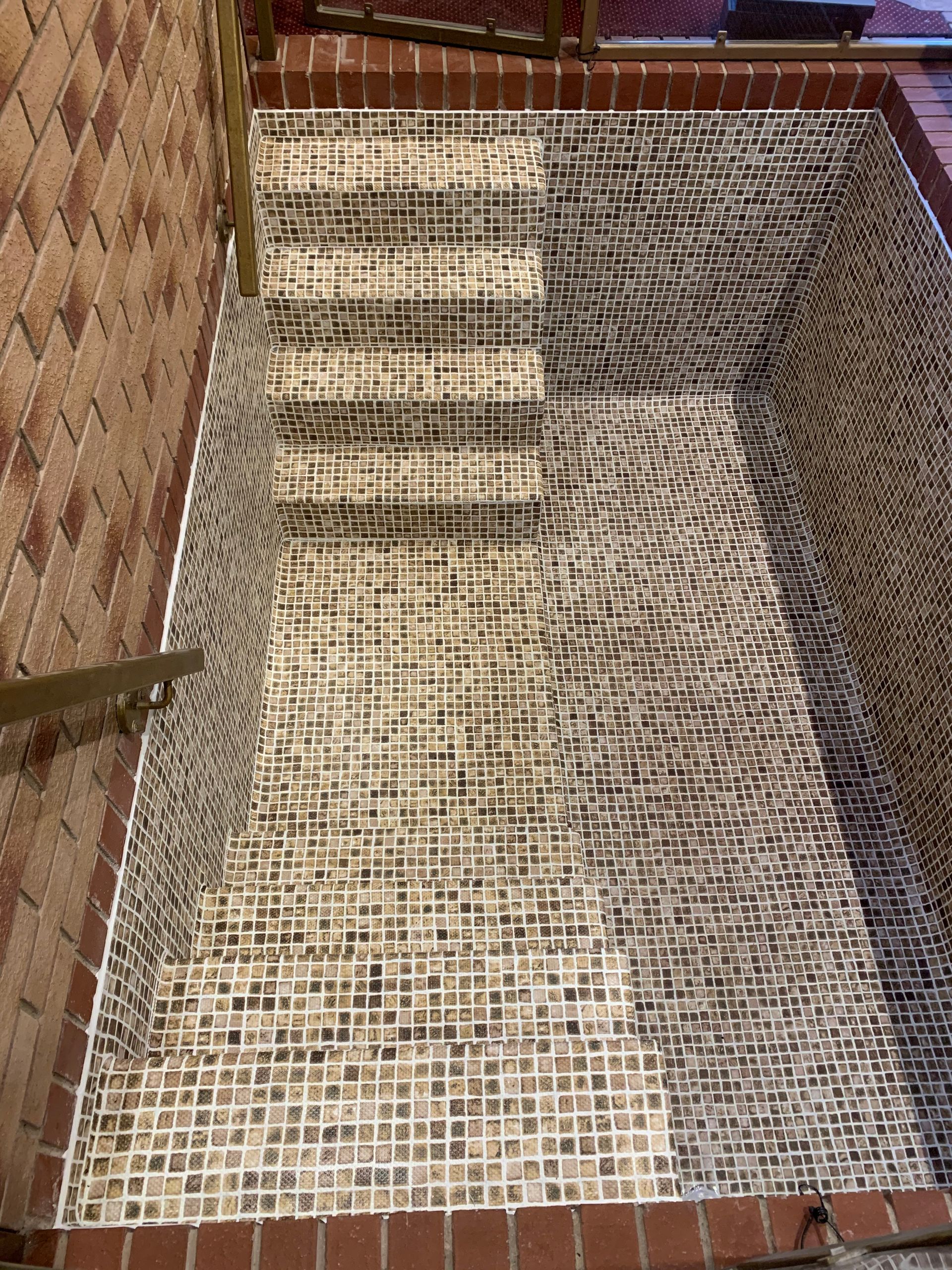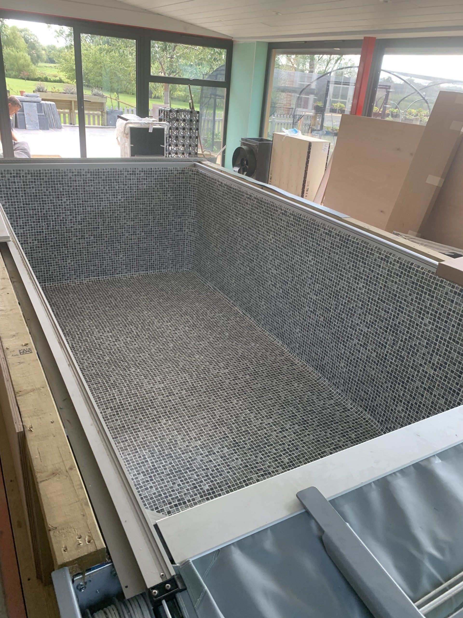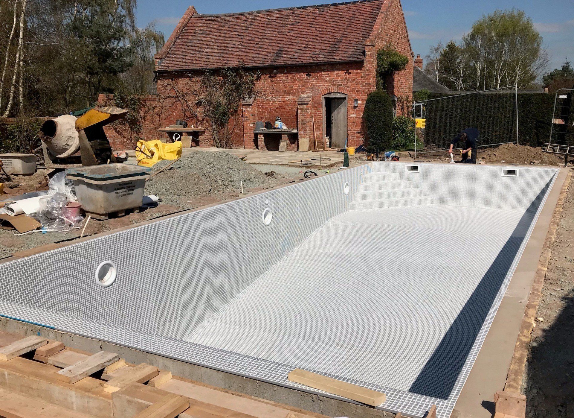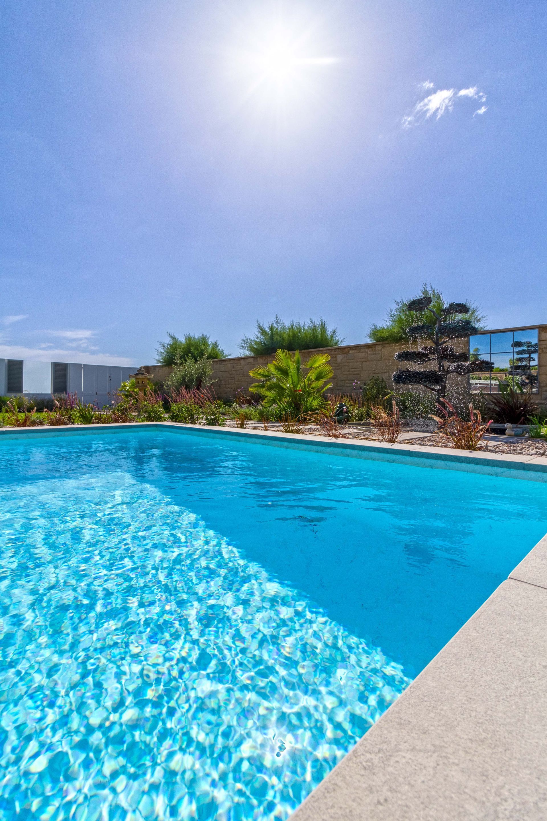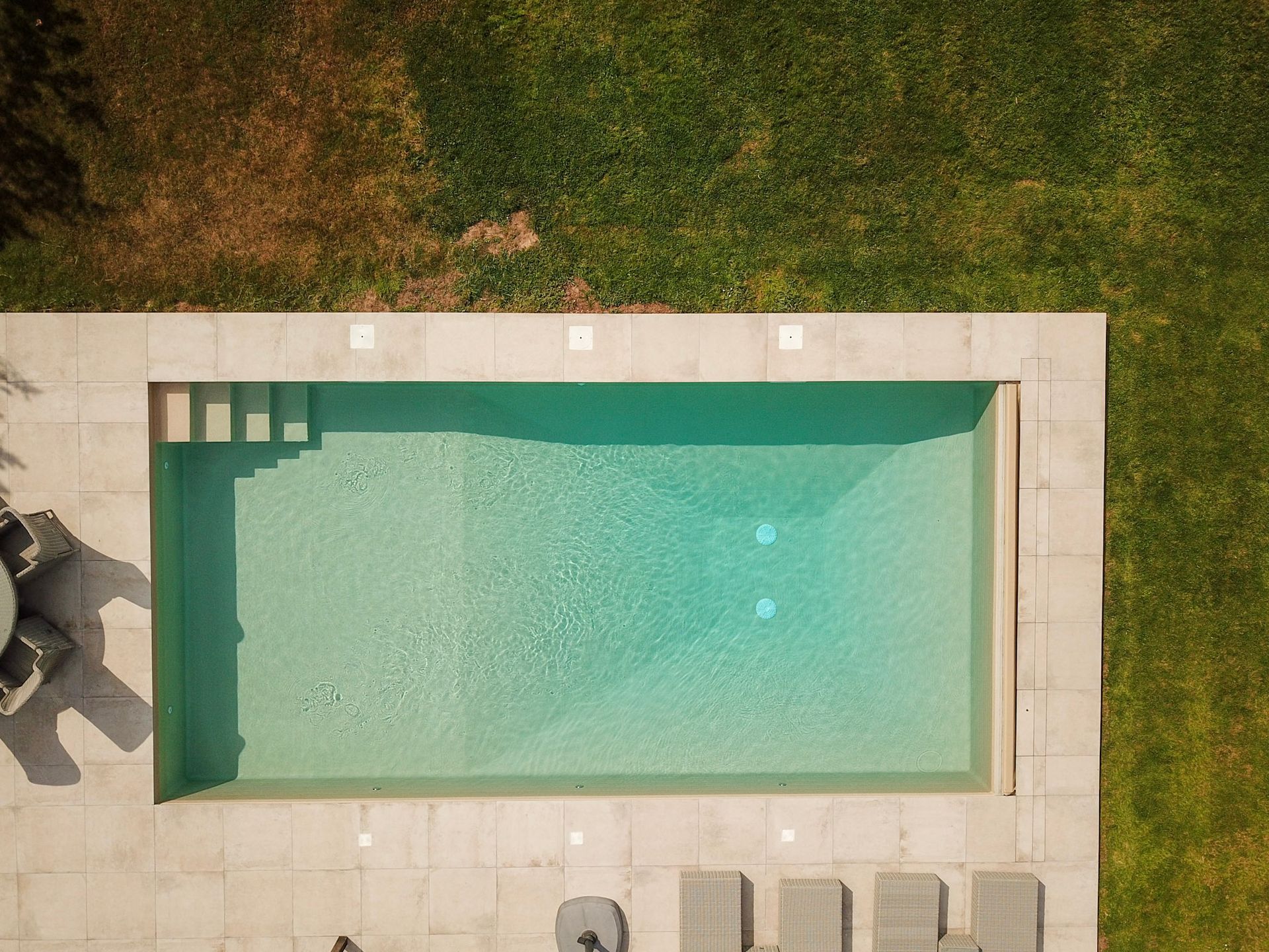 Water-filled Blue Sparks pool with Stoneflex Bazelet steps