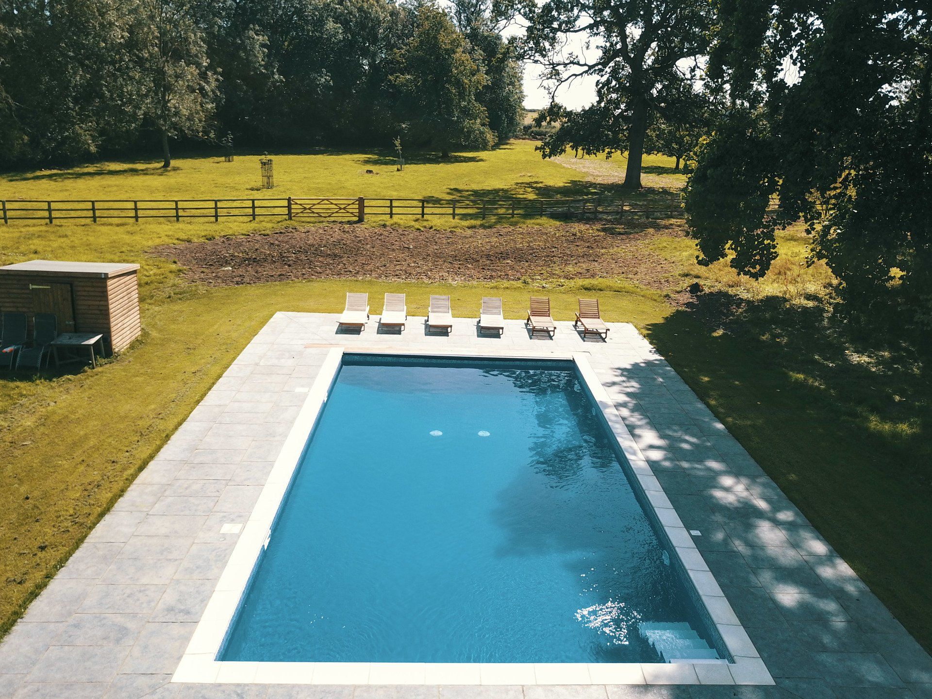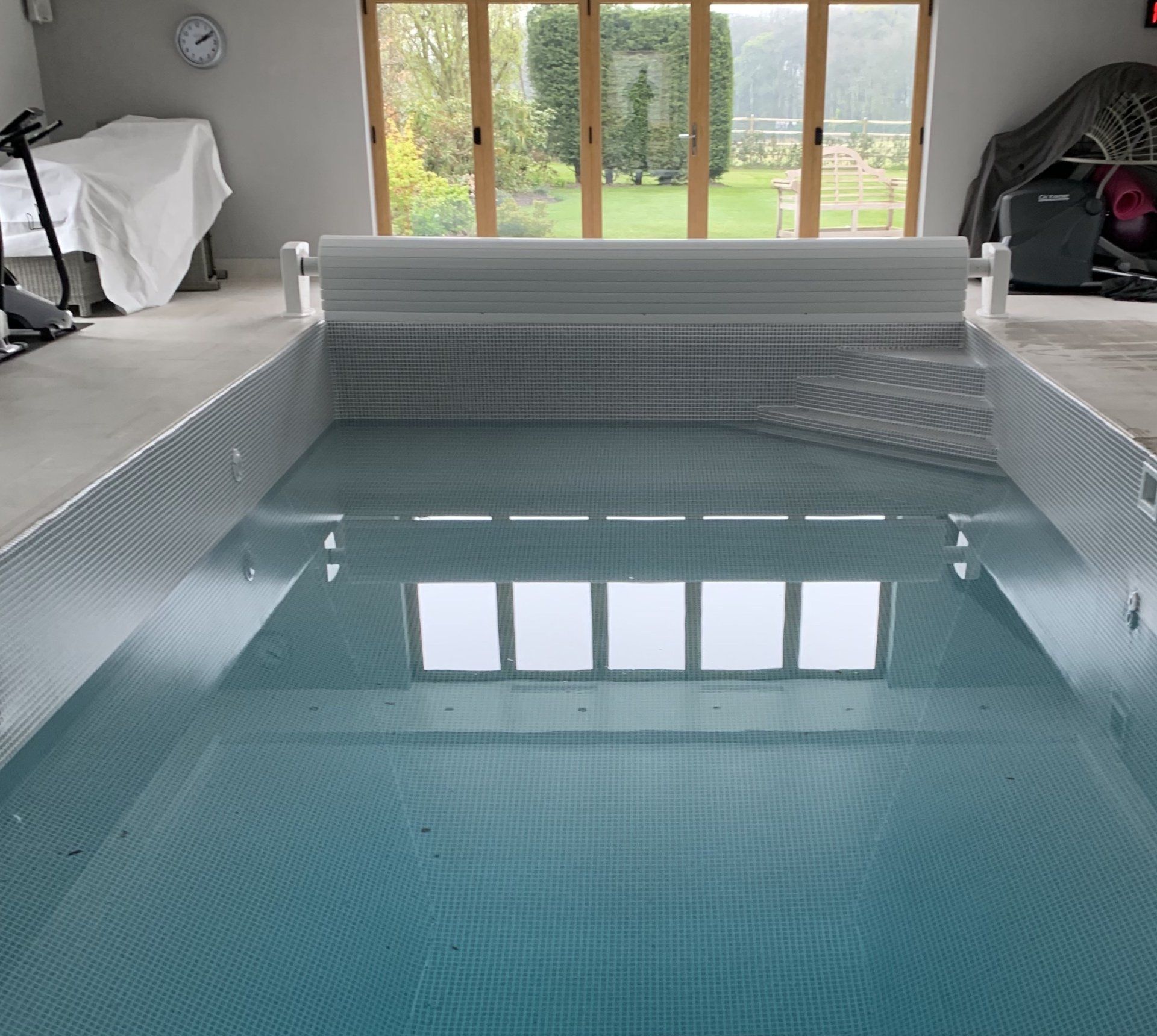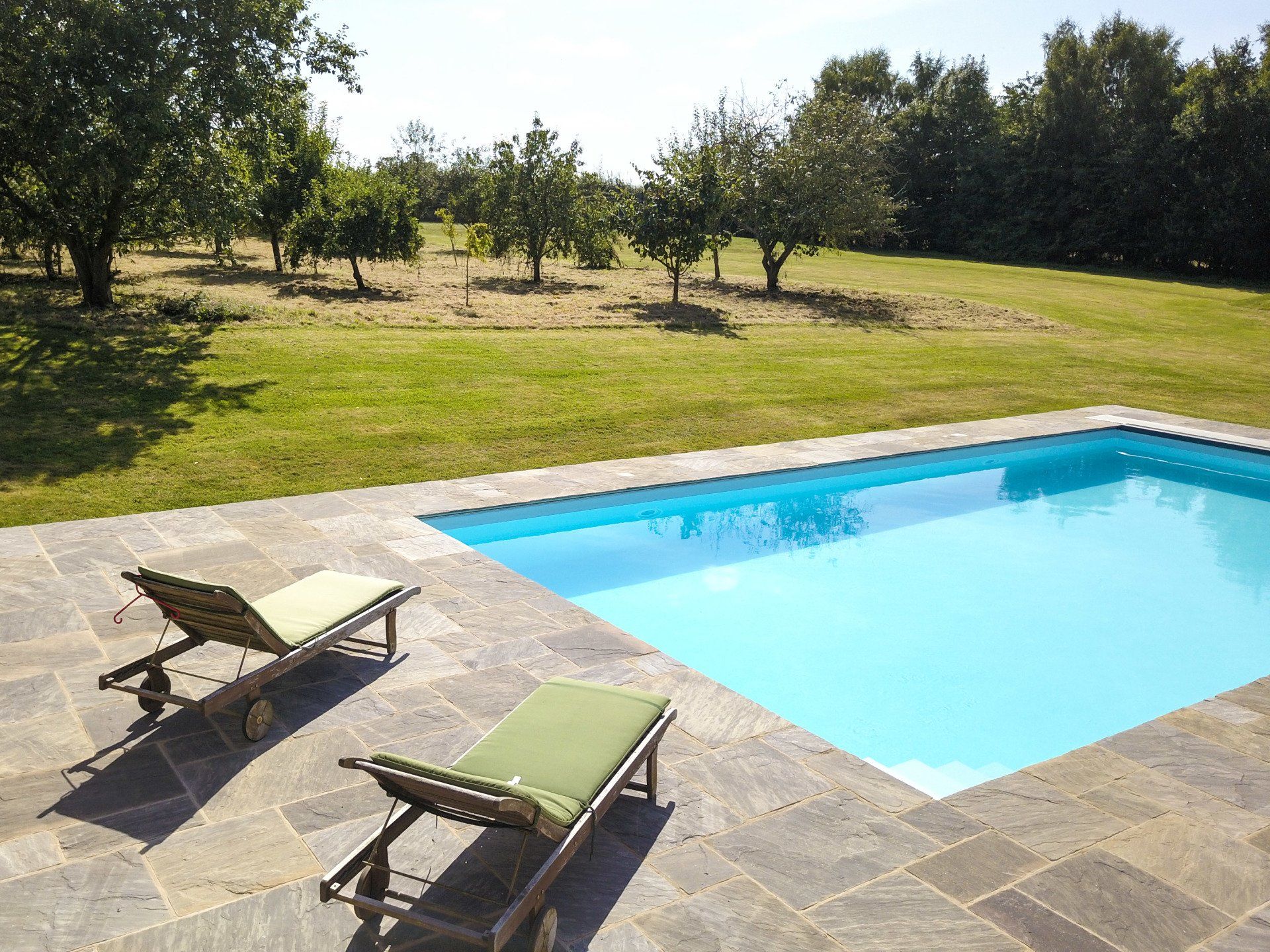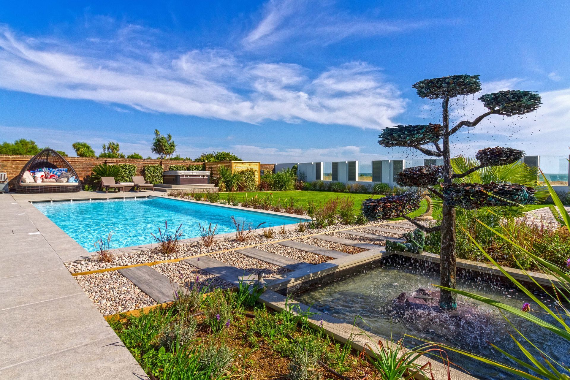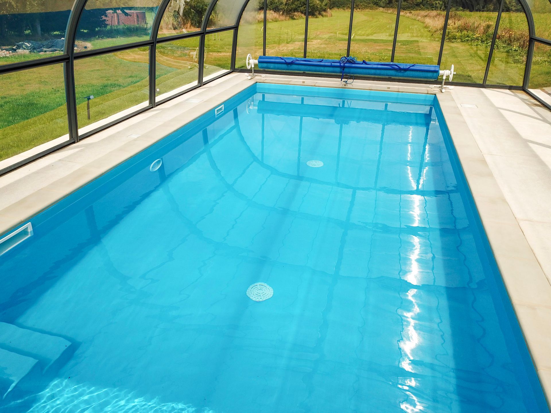 Water-filled Blue Sparks pool with Stoneflex Bazelet steps