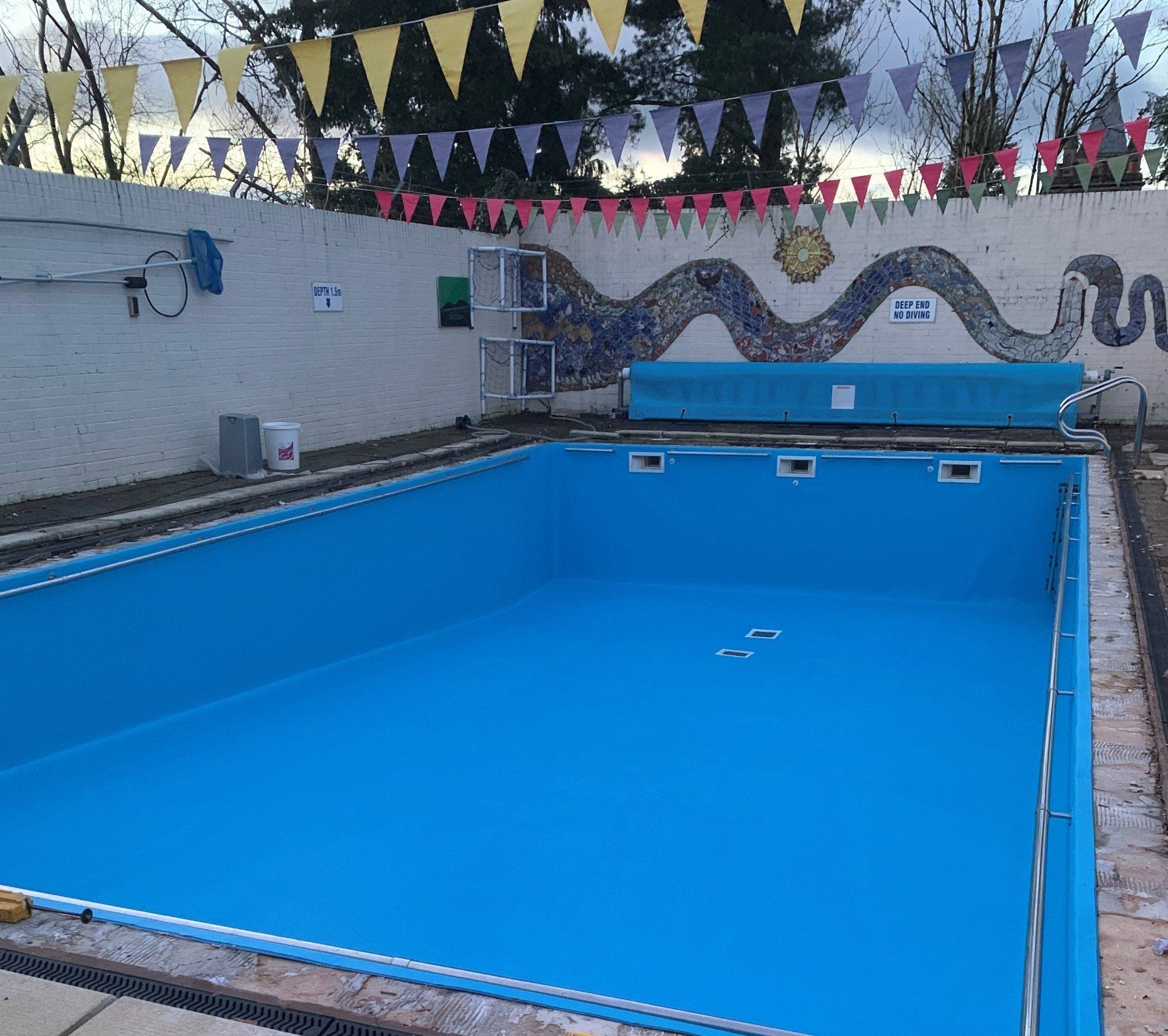 Light Blue Walls & Floor, Snapir Blue tileband, Centre black racing lane