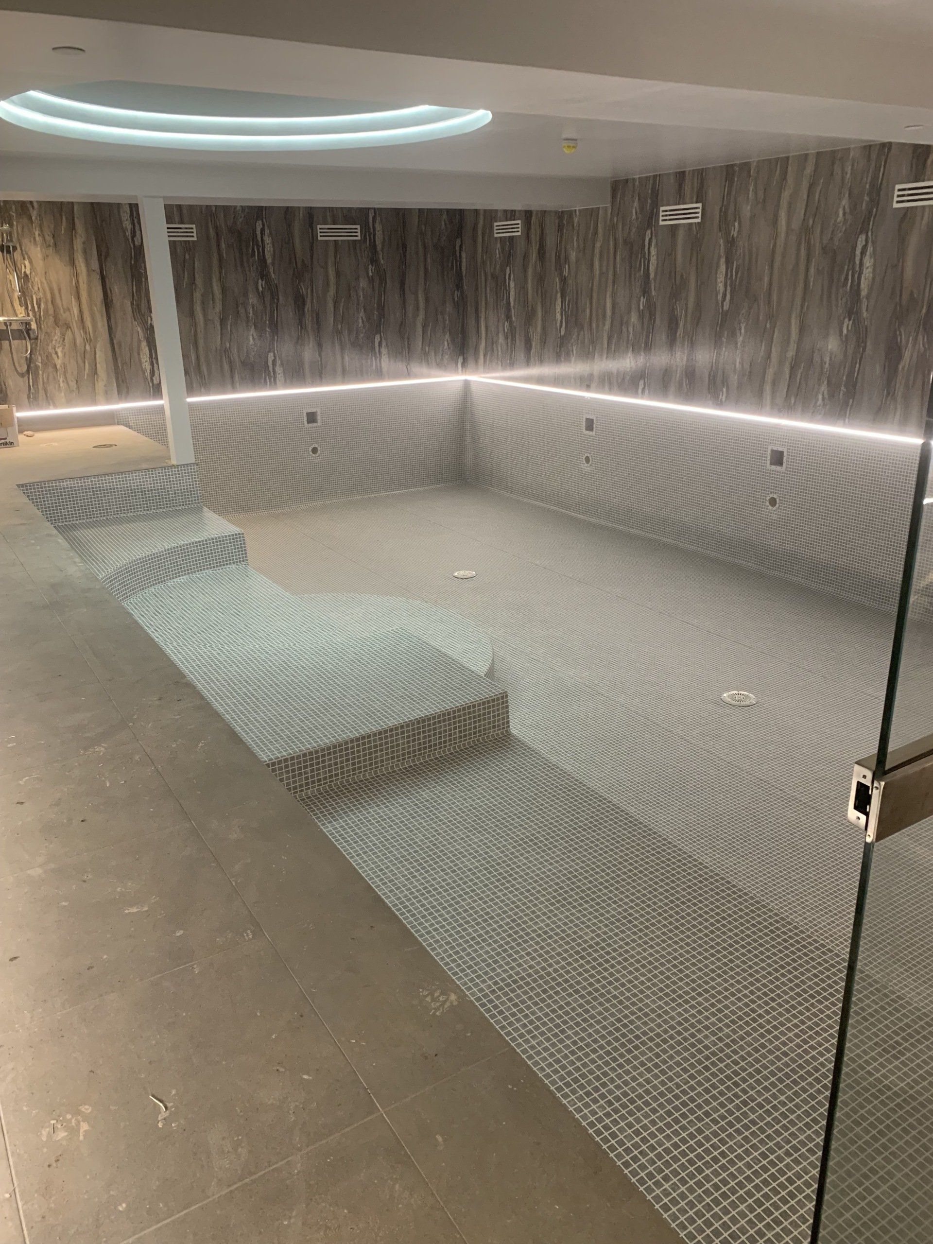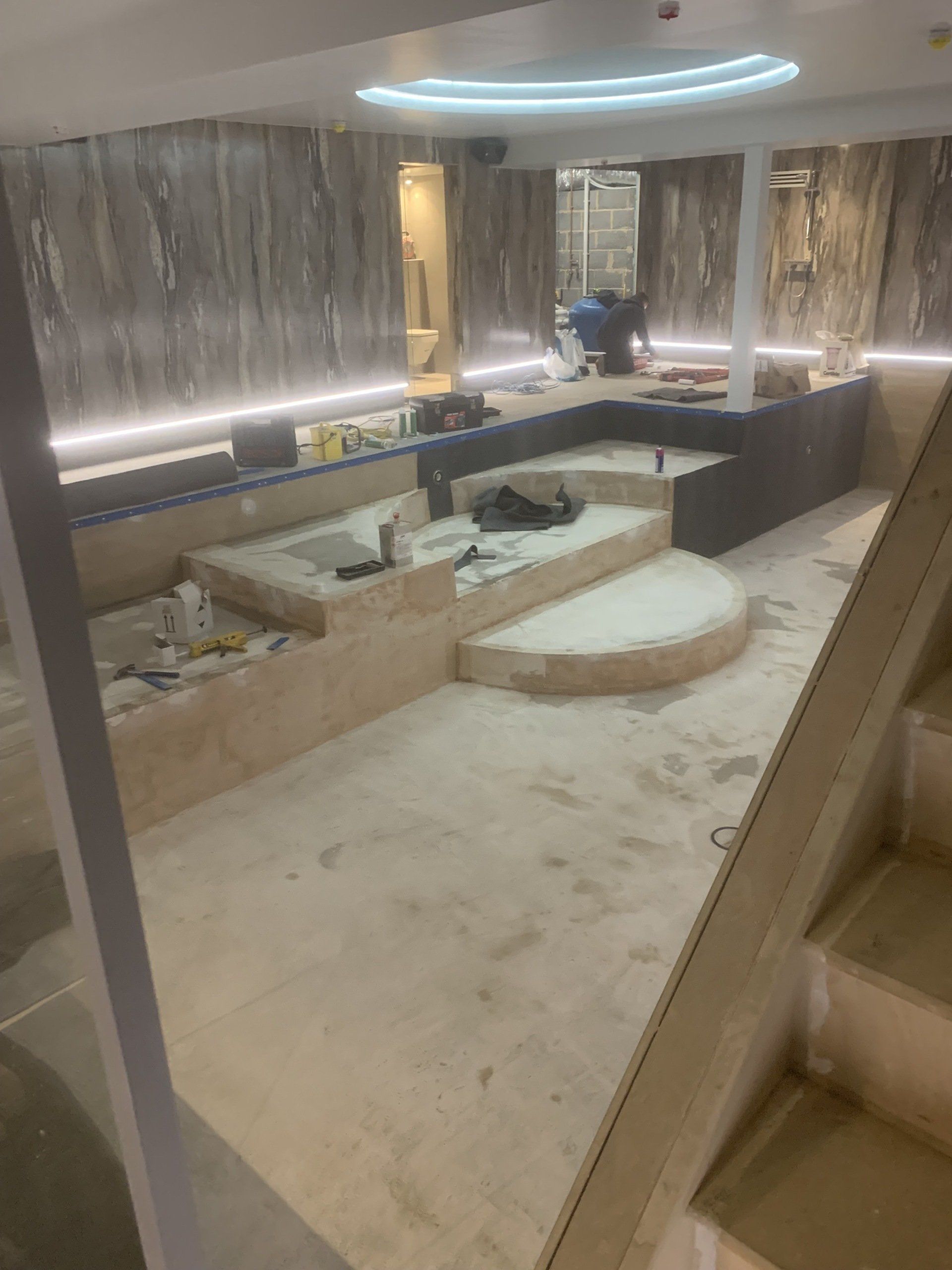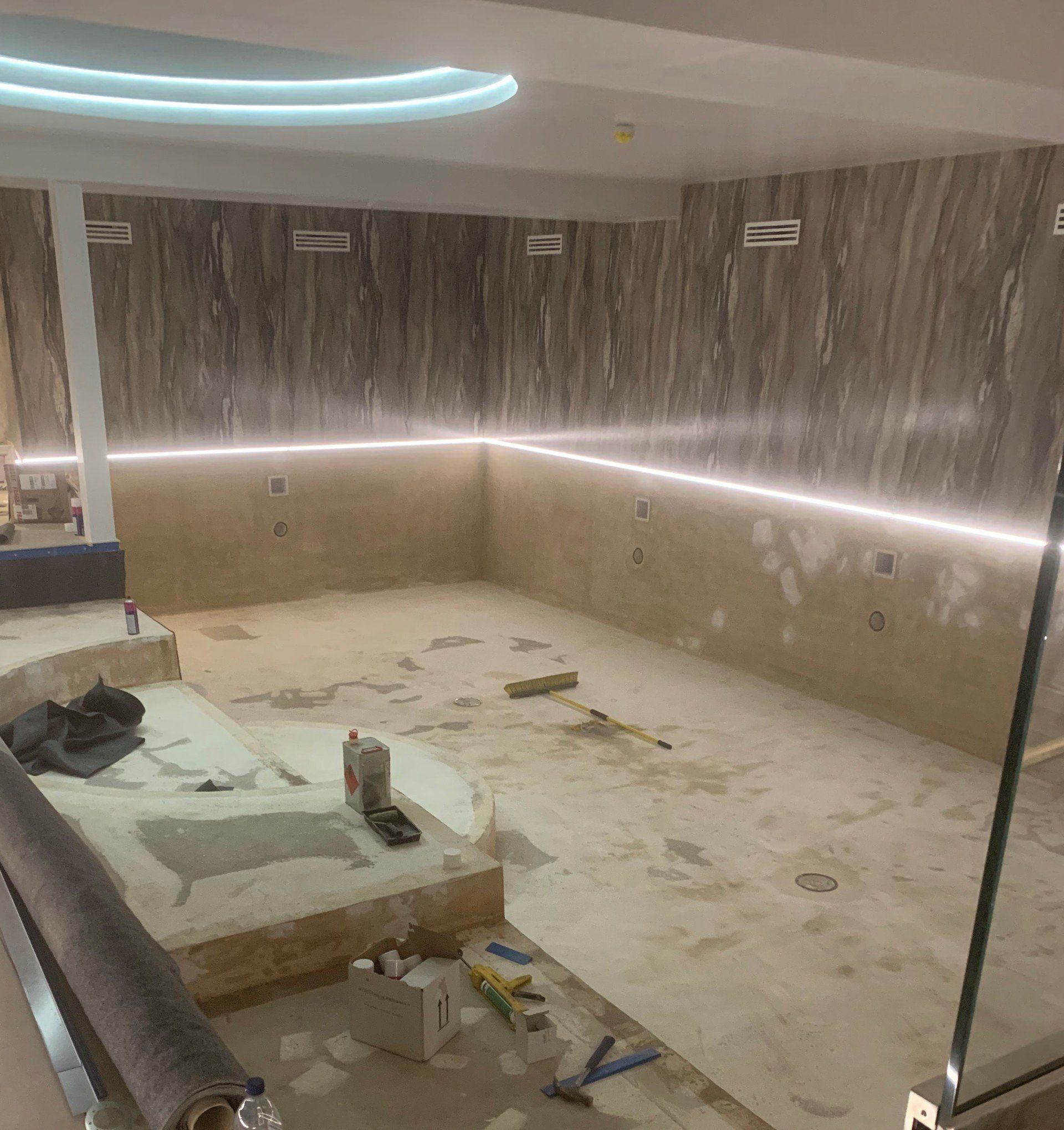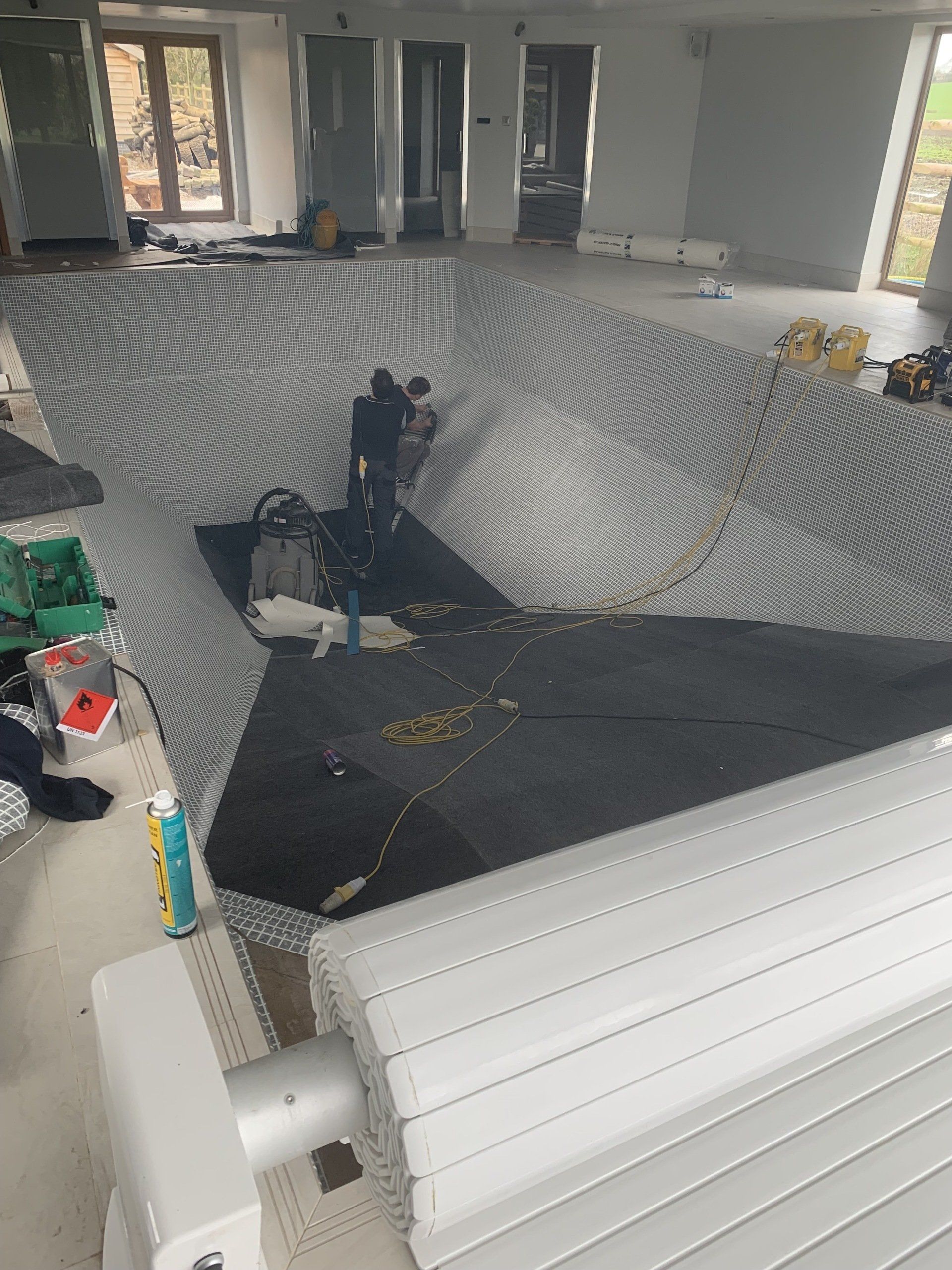 Jamie works on site installing new liners. He has been lining swimming pools since leaving school.