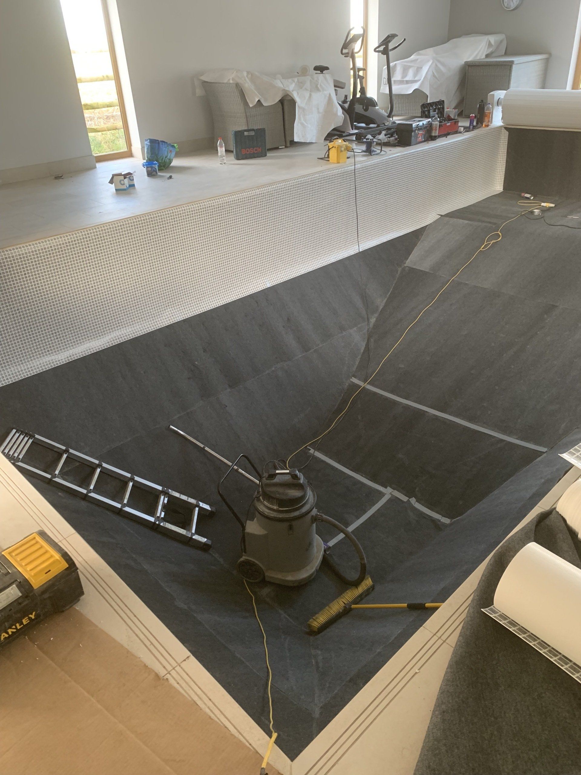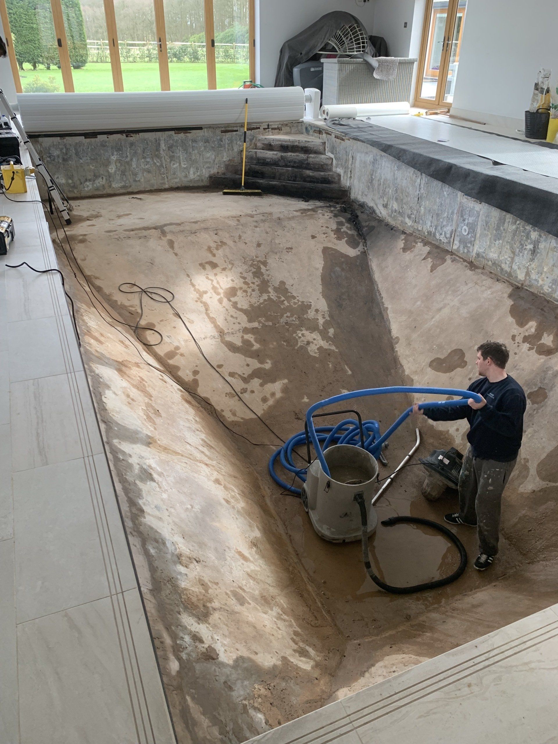 Dave works on site installing new liners. He has been lining swimming pools for 30 years.